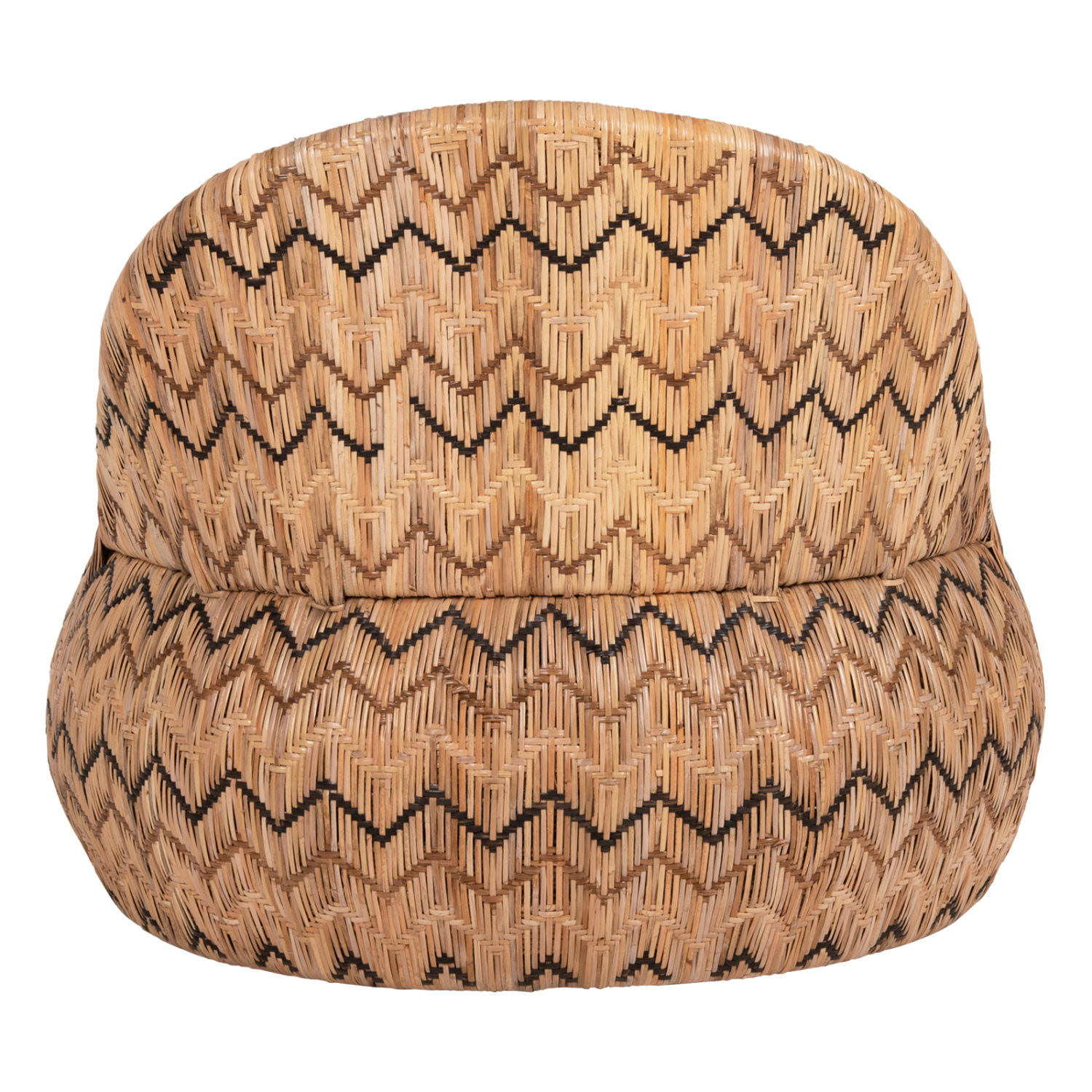 Ολόκληρη η πολυθρόνα είναι φτιαγμένη από rattan. Το Rattan είναι το καλύτερο και το πιο ευρέως χρησιμοποιούμενο φυσικό υλικό για πλεκτές κατασκευές, όπως wicker κτλ. Μάλιστα, το rattan που καλλιεργείται στην Ινδονησία είναι το ποιοτικότερο και ανθεκτικότερο υλικό από παρόμοια που καλλιεργούνται σε άλλες περιοχές.