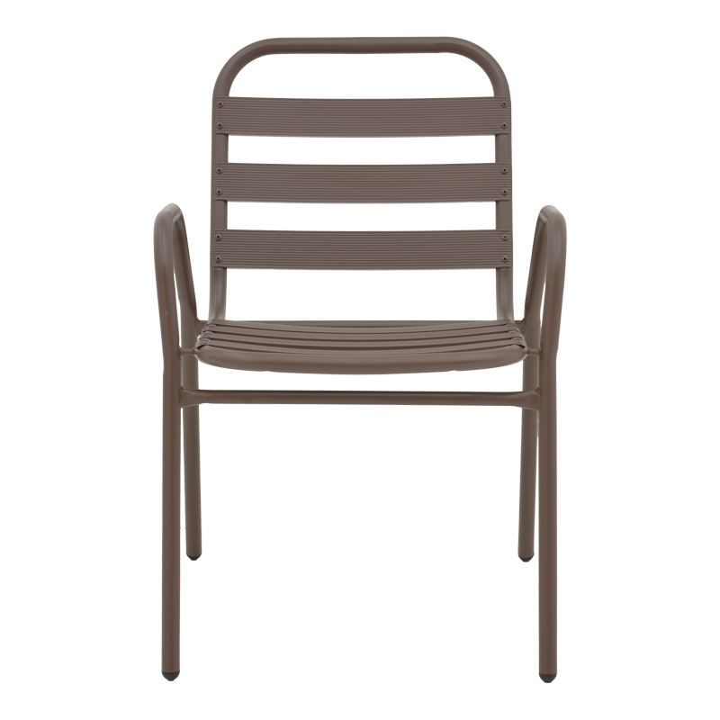 Πολυθρόνα Sussie pakoworld στοιβαζόμενη καφέ μέταλλο με φέτες αλουμινίου 45x62x76εκ