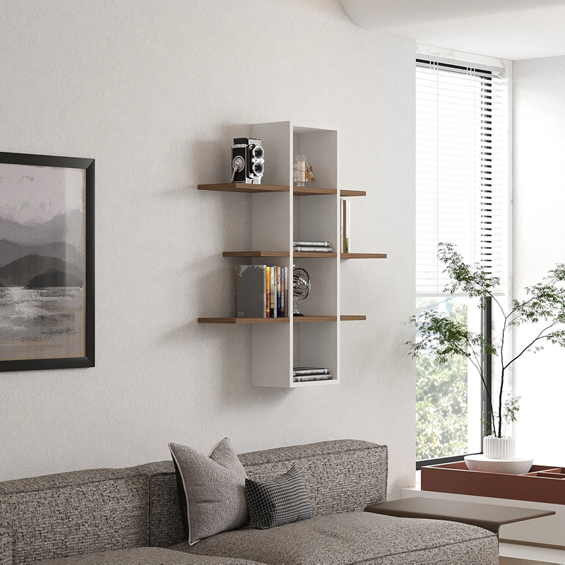 Ραφιέρα τοίχου Akira pakoworld μελαμίνη σε καρυδί-λευκή απόχρωση 96×19.5×101εκ