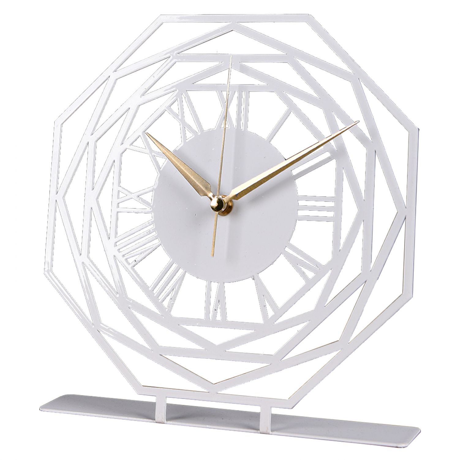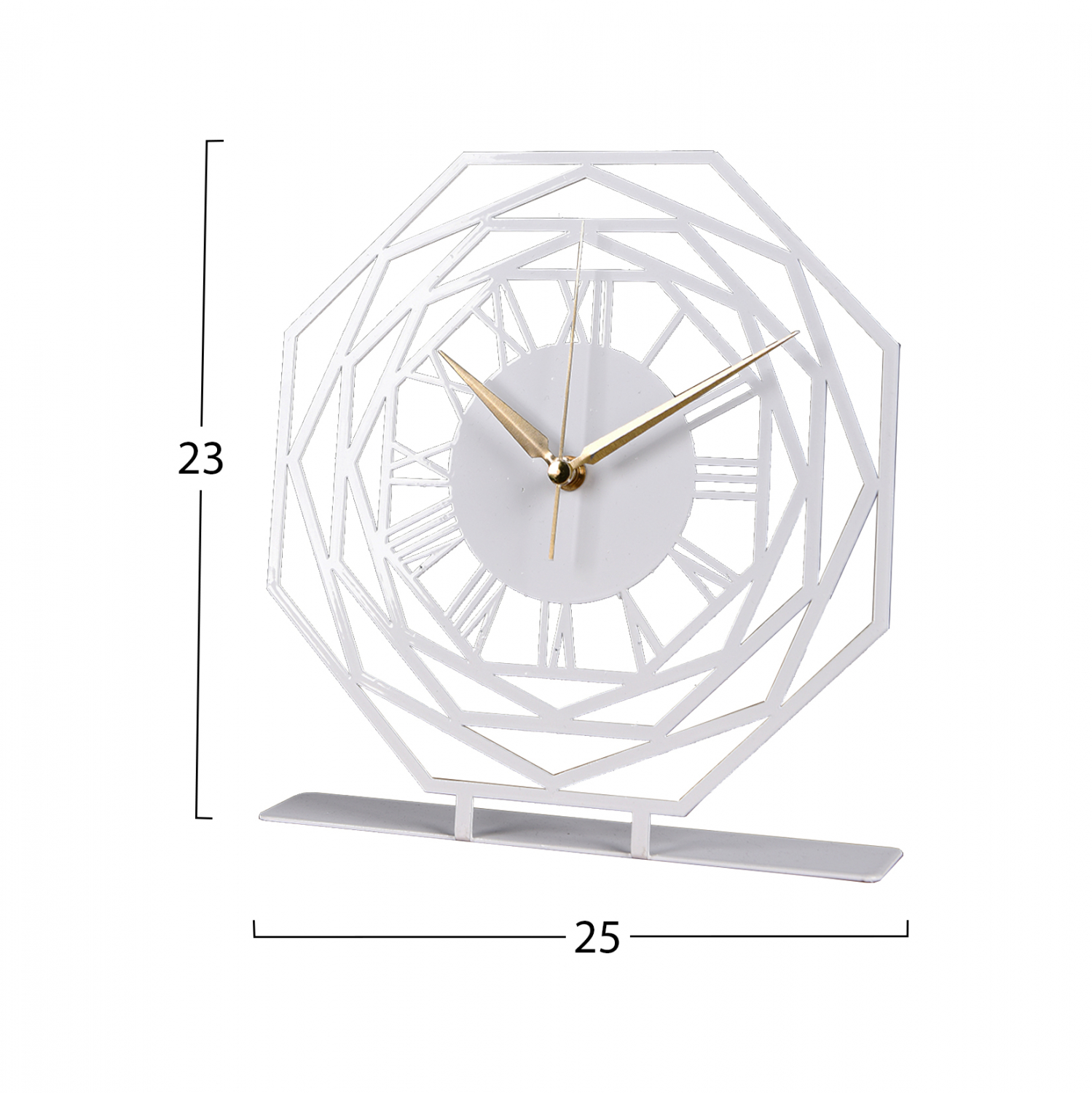 Ρολόι επιτραπέζιο σε λευκή απόχρωση με χρυσές λεπτομέρειες στους δείκτες.