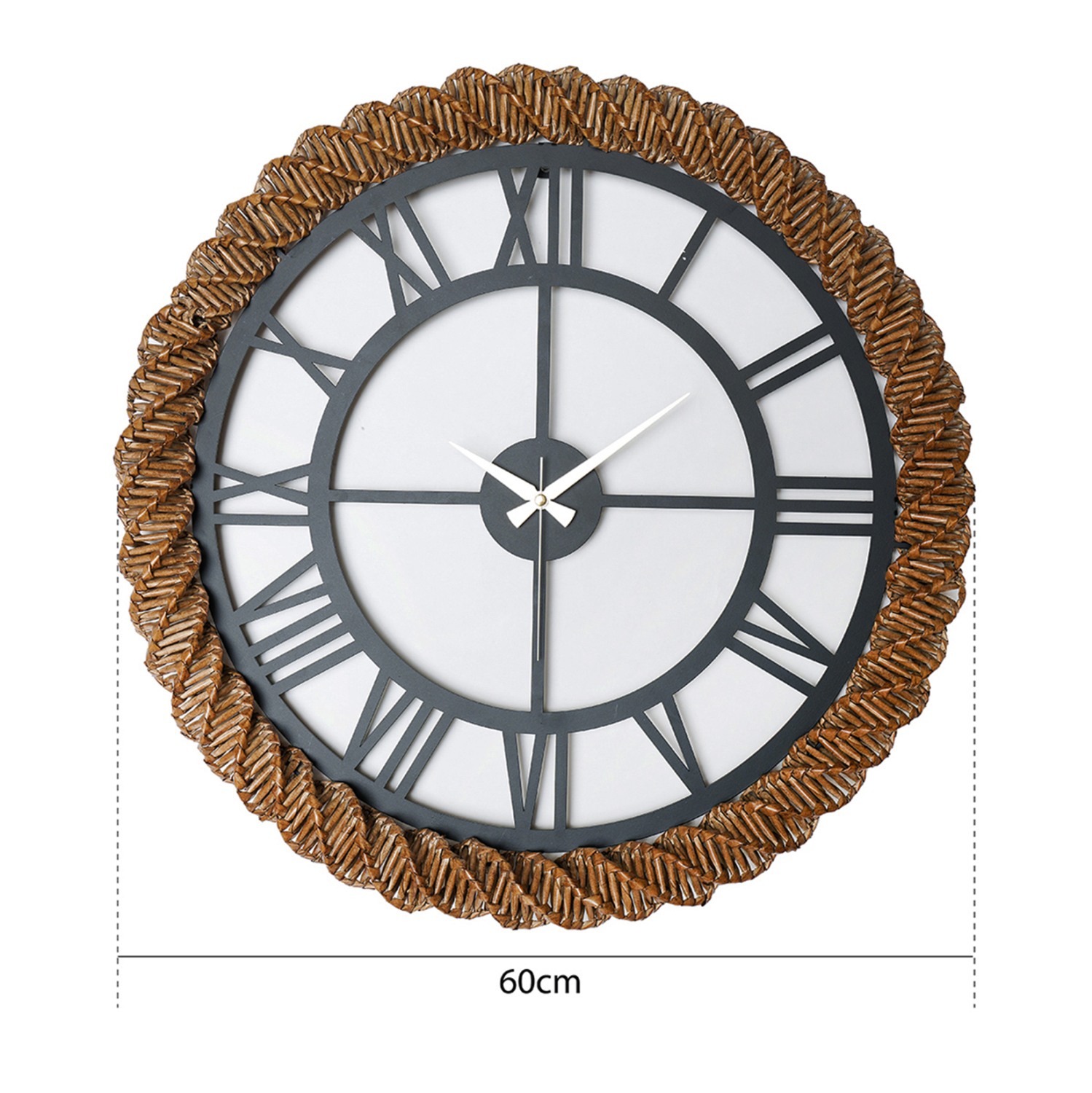Μια όμορφη και απαραίτητη αισθητική αλλά και χρηστική προσθήκη για κάθε δωμάτιο του σπιτιού ή της επιχείρησής σας. Ένα μεγάλο στρογγυλό ρολόι τοίχου είναι μια κλασική διακοσμητική ιδέα που ποτέ δεν θα παλιώσει. Το HM4337 είναι μεταλλικό με λατινικούς αριθμούς σε ΣΚΟΥΡΟ ΓΚΡΙ χρώμα με χειροποίητη πλεκτή ψάθα περιμετρικά σε ΦΥΣΙΚΟ χρώμα και αποτελεί μια σικάτη και ελκυστική πρόταση για οποιονδήποτε χώρο, που θα εντυπωσιάσει, προσφέροντας ένα όμορφο εστιακό σημείο.