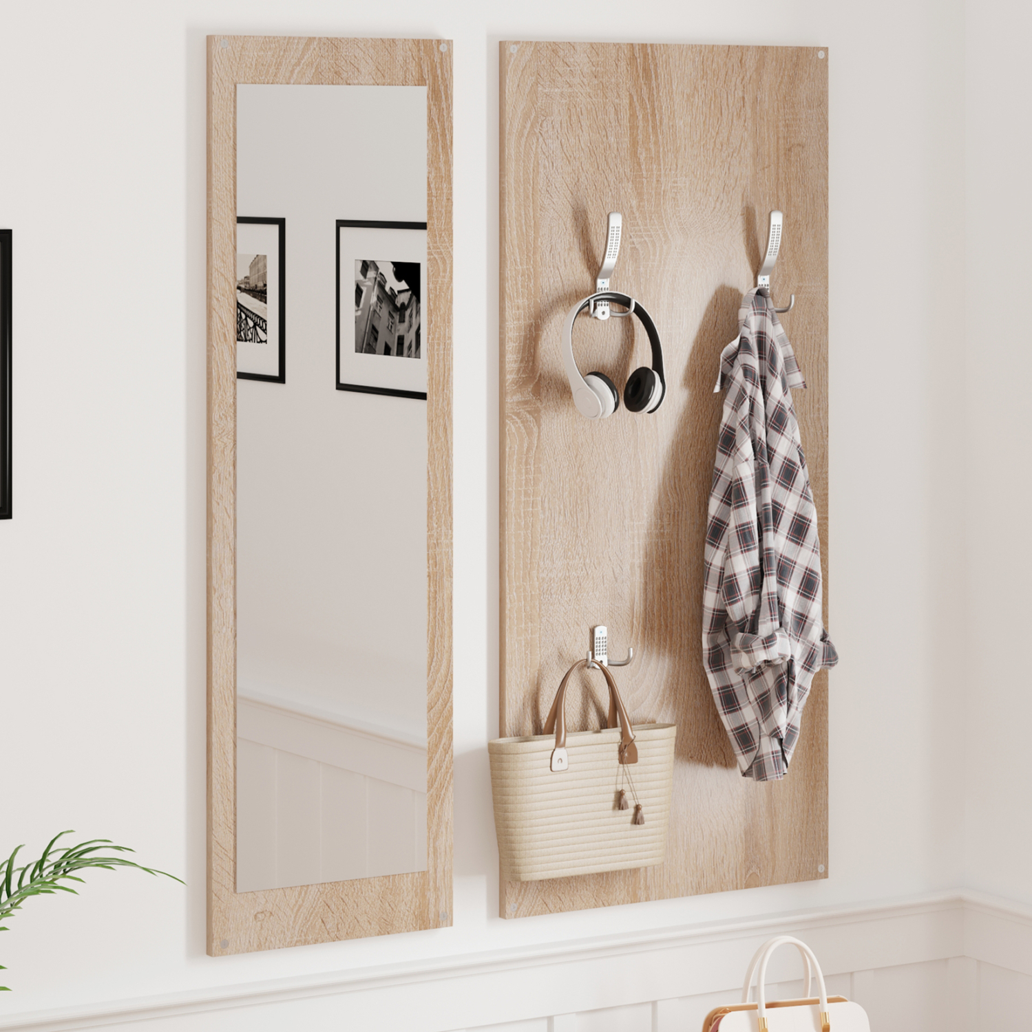 Το έπιπλο εισόδου VERN αποτελείται από 3 κομμάτια. Μία κλασική παπουτσοθήκη, μία κατασκευή με κρεμάστρες ως βεστιάριο αναρτημένη στον τοίχο και ένας καθρέπτης δίπλα από τις κρεμάστρες. Ένα σετ μελαμίνης σε εντυπωσιακό χρώμα SONAMA που θα σας ενθουσιάσει με την πρακτικότητα του, μιας και το κάθε κομμάτι είναι ανεξάρτητο και μπορεί να τοποθετηθεί οπουδήποτε σας βολεύει καλύτερα.
