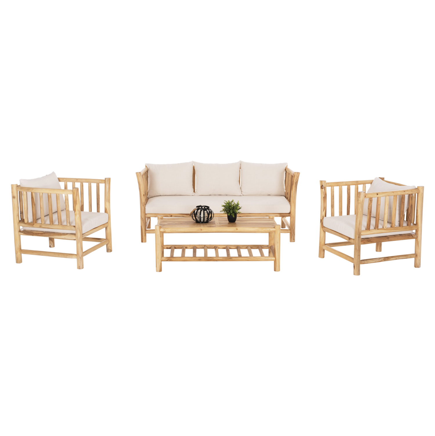 ΣΕΤ ΣΑΛΟΝΙ 4ΤΜΧ EDDARD HM9340 ΑΠΟ ΜΑΣΙΦ ΞΥΛΟ TEAK ΦΥΣΙΚΟ – ΛΕΥΚΟ