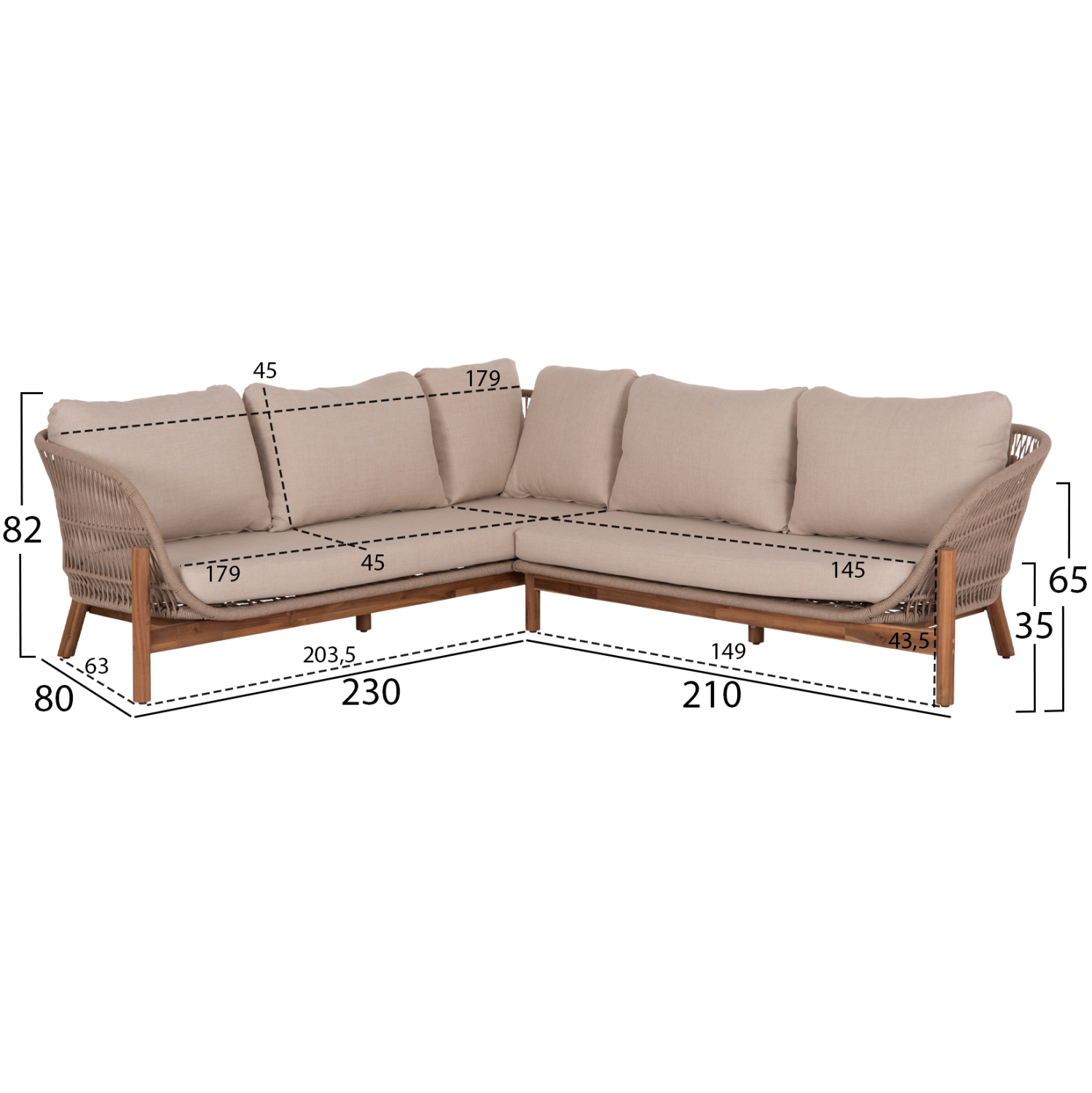 Σας παρουσιάζουμε το νέο σετ σαλονιού εξωτερικού χώρου SANJI σε διαμόρφωση γωνίας που αποτελείται από ένα τετράγωνο τραπεζάκι και 2 καναπέδες σε γωνία. Τα πόδια σε όλο το σετ είναι από ποιοτικό ξύλο ακακίας σε ΦΥΣΙΚΟ χρώμα, όπως και ολόκληρο το τραπεζάκι. Ο σκελετός των καθισμάτων είναι από αλουμίνιο επενδυμένος με σχοινί σε ανοιχτό ΜΠΕΖ χρώμα! Τα μαξιλάρια είναι επενδυμένα με πολυεστερικό ύφασμα σε ΜΠΕΖ χρώμα και διαθέτουν γέμισμα με μέτριας σκληρότητας αφρώδη υλικά για την μεγαλύτερη δυνατή άνεση, αλλά και φερμουάρ. Τι άλλο να ζητήσει κανείς για να αναβαθμίσει τον εξωτερικό χώρο του;
