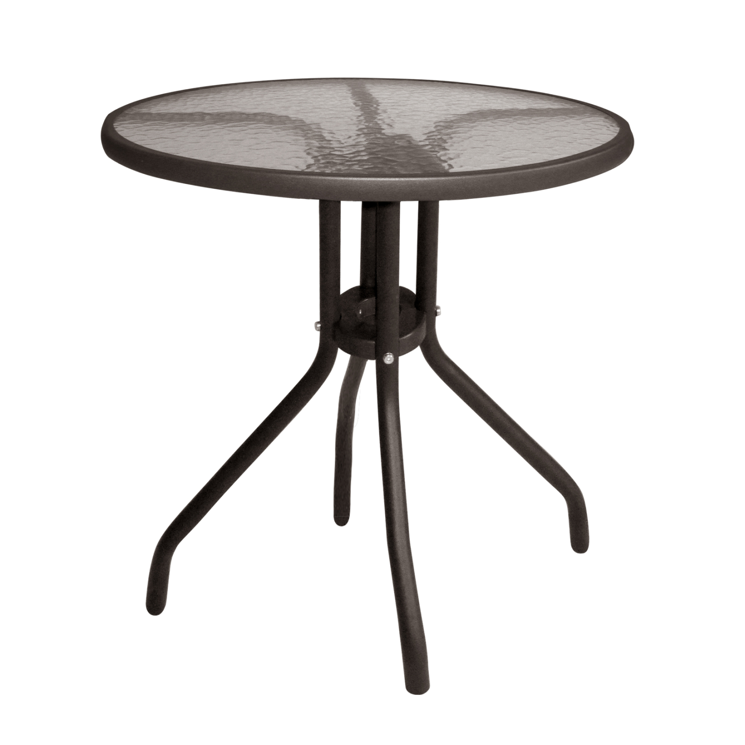 Ένα τραπέζι μεταλλικό εξωτερικού χώρου σε χρώμα καφέ , με ενσωματωμένο τζαμί ασφάλειας (secure).