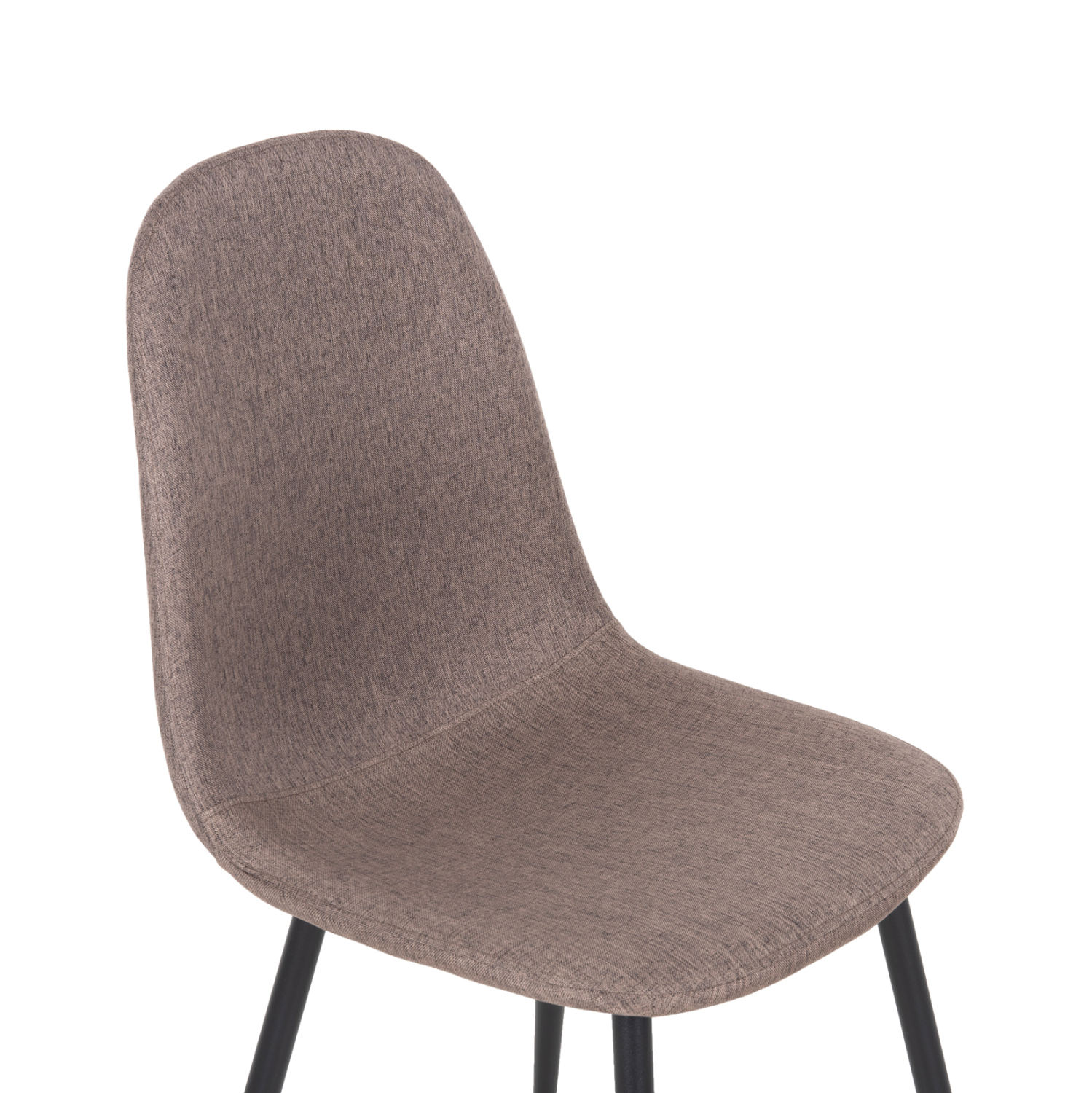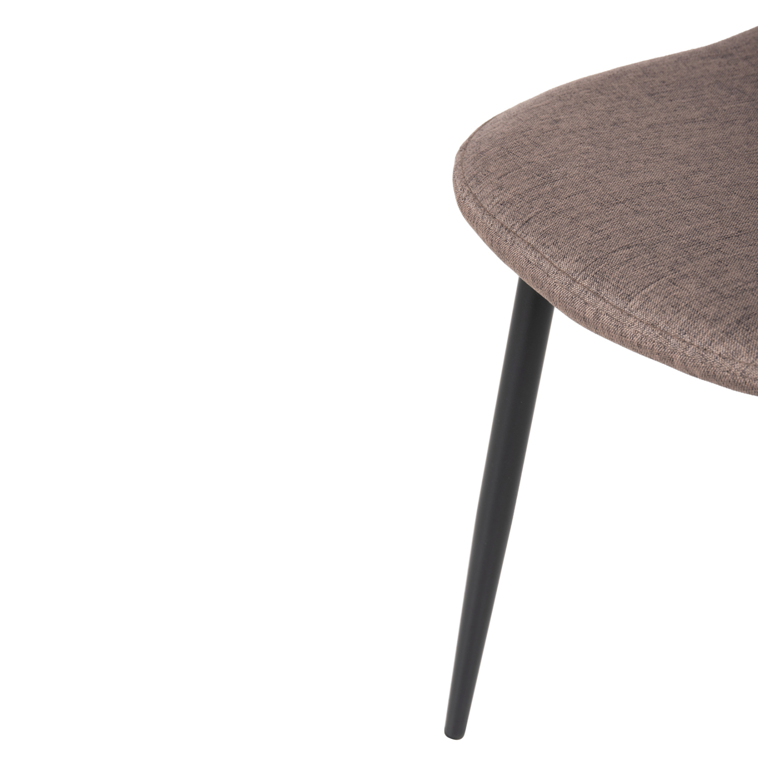 Οι καρέκλες είναι κατασκευασμένες από μέταλλο και ύφασμα,το κάθισμα της καρέκλας είναι επενδεδυμένο με ύφασμα σε σκούρο μπεζ απόχρωση ενώ τα πόδια είναι μεταλλικά.