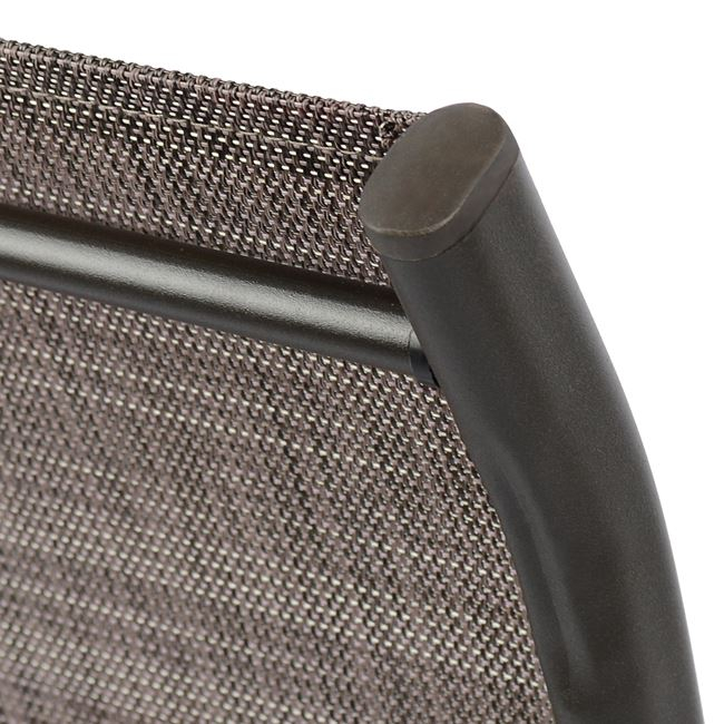 4 πολυθρόνες εξωτερικού χώρου από μεταλλικό σκελετό σε καφέ χρώμα με textline 2×1 μεγάλης αντοχής σε ήλιο και βροχή.