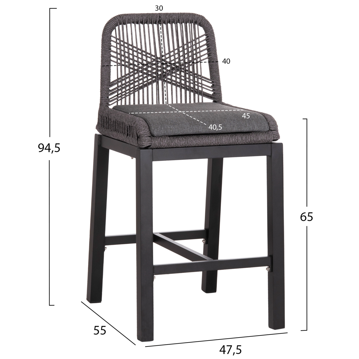 Το σκαμπό μπαρ μεσαίου ύψους HOWARD για επαγγελματική χρήση, είναι αυτό ακριβώς που θέλετε! Μοντέρνο, άνετο και σταθερό! Η διχρωμία του ΜΑΥΡΟΥ σκελετού με το ΓΚΡΙ κάθισμα και την ΓΚΡΙ επένδυση από ποιοτικό σχοινί στην πλάτη είναι μοναδική. Η πλάτη είναι πρακτική ενώ το κάθισμα είναι ουσιαστικά μια βάση στην οποία τοποθετείται το μαξιλάρι.