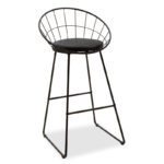 Σκαμπό μπαρ Seth pakoworld μεταλλικό μαύρο με μαξιλάρι PVC μαύρο