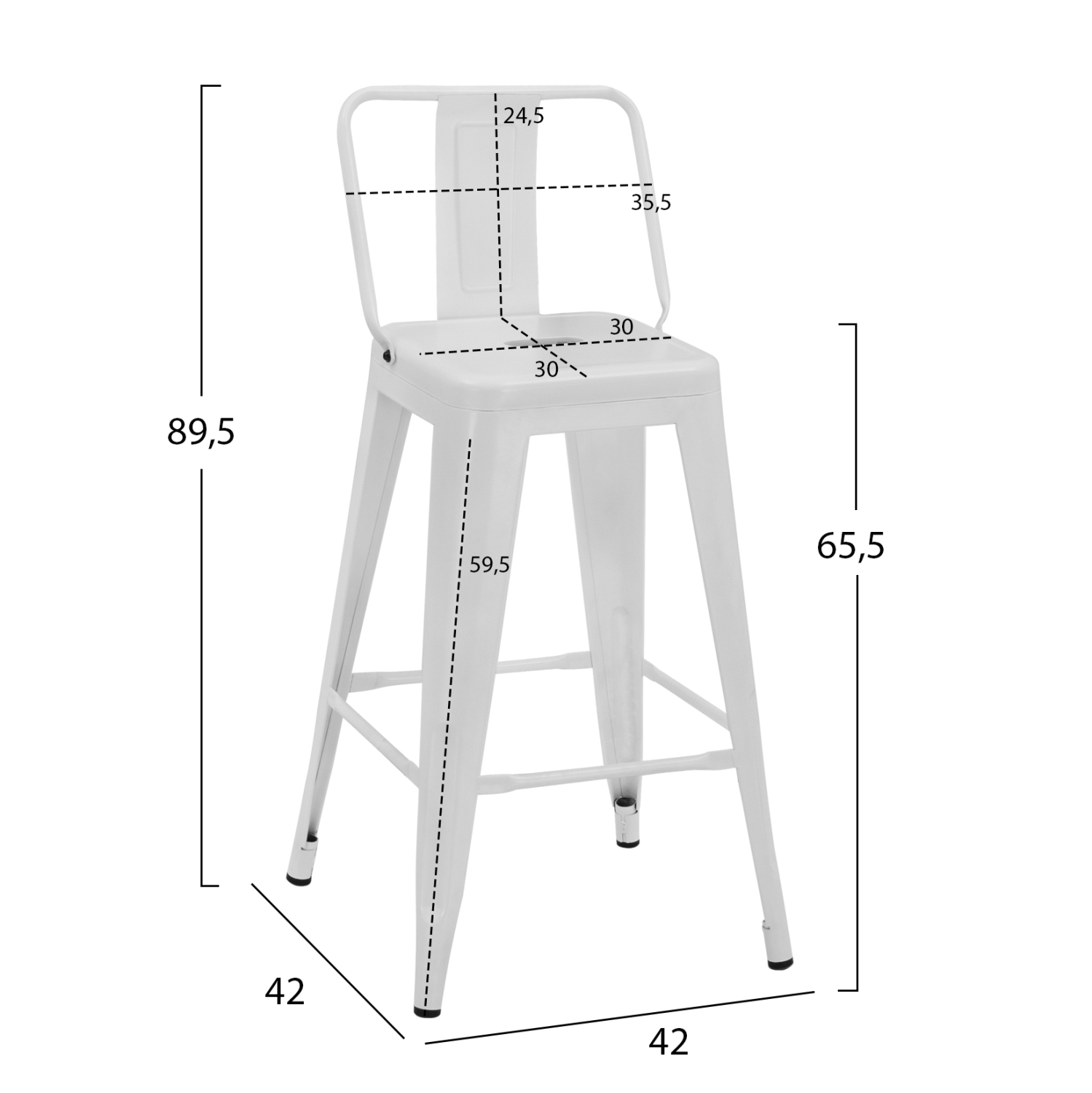 Σκαμπό μεσαίου ύψους MELITA μεταλλικό με πλάτη, σε λευκή ματ απόχρωση.