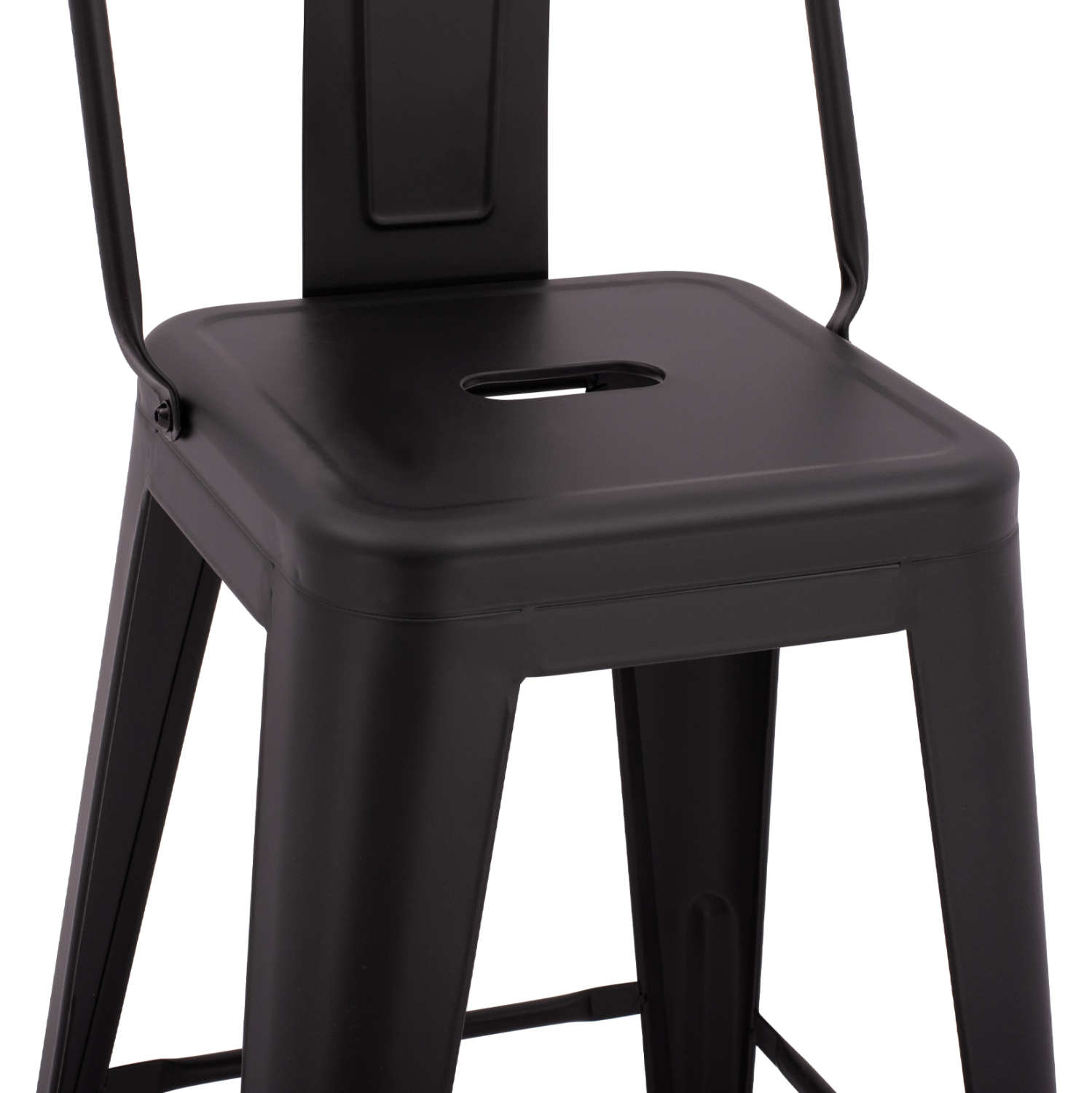 Σκαμπό μεσαίου ύψους MELITA μεταλλικό με πλάτη, σε μαύρη ματ απόχρωση.