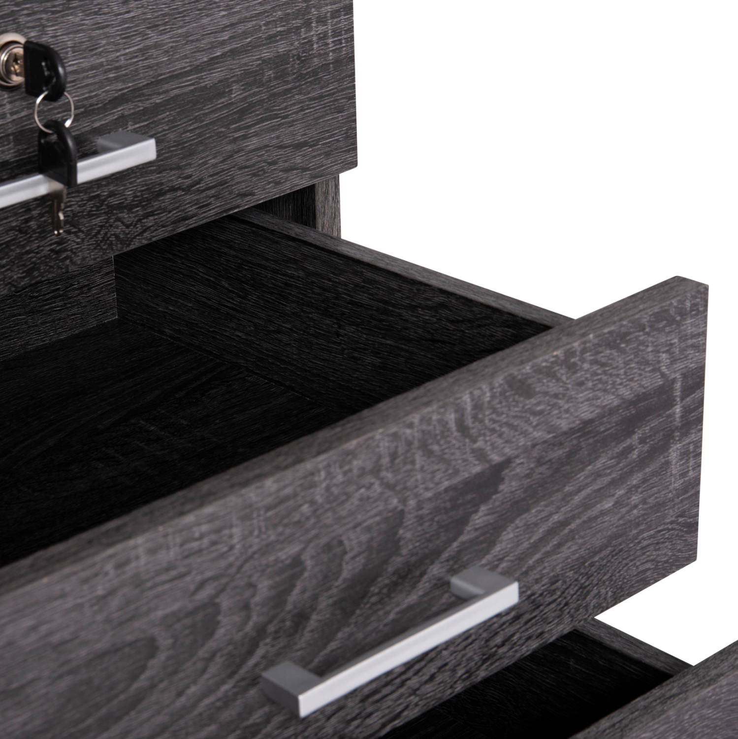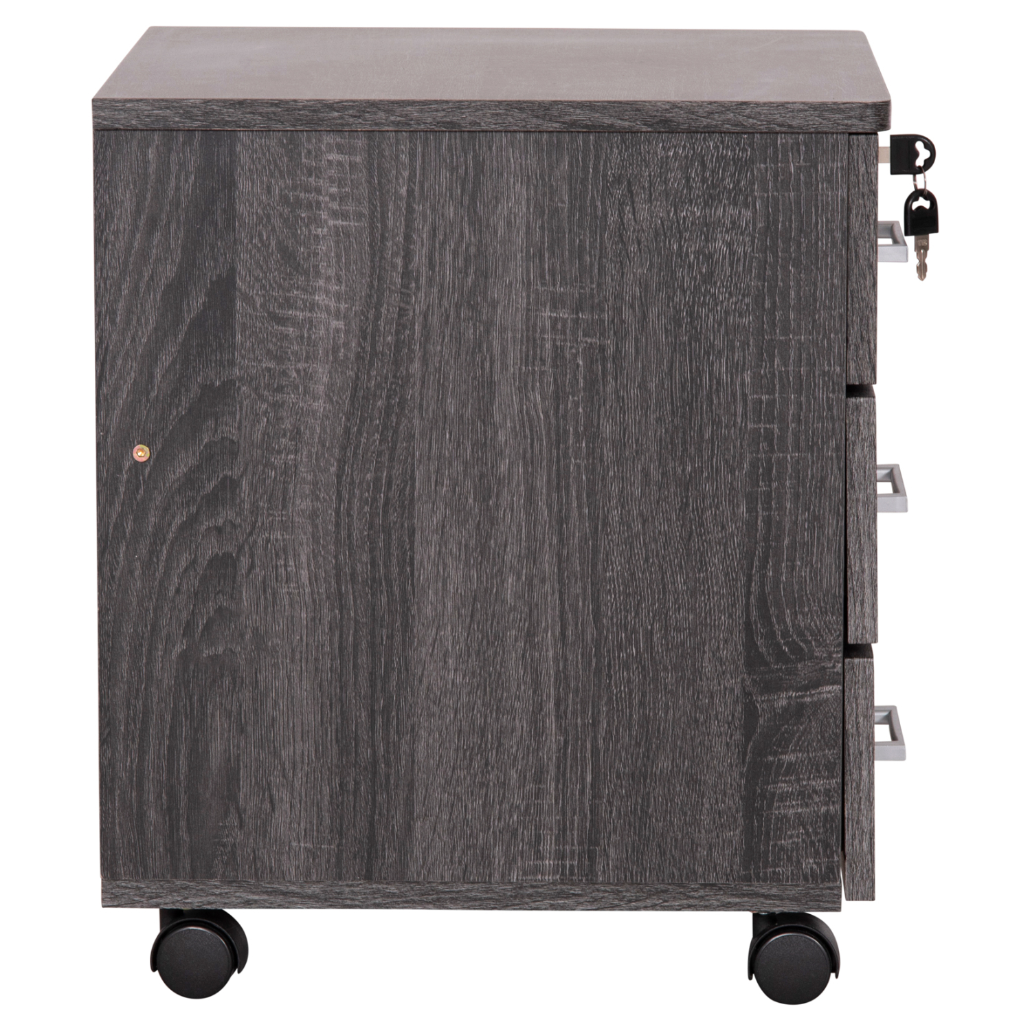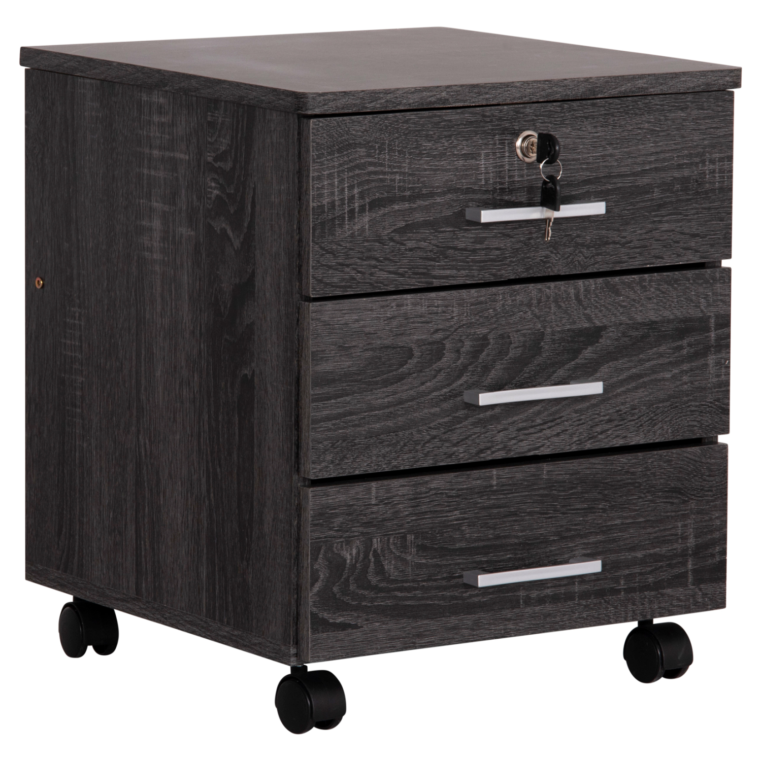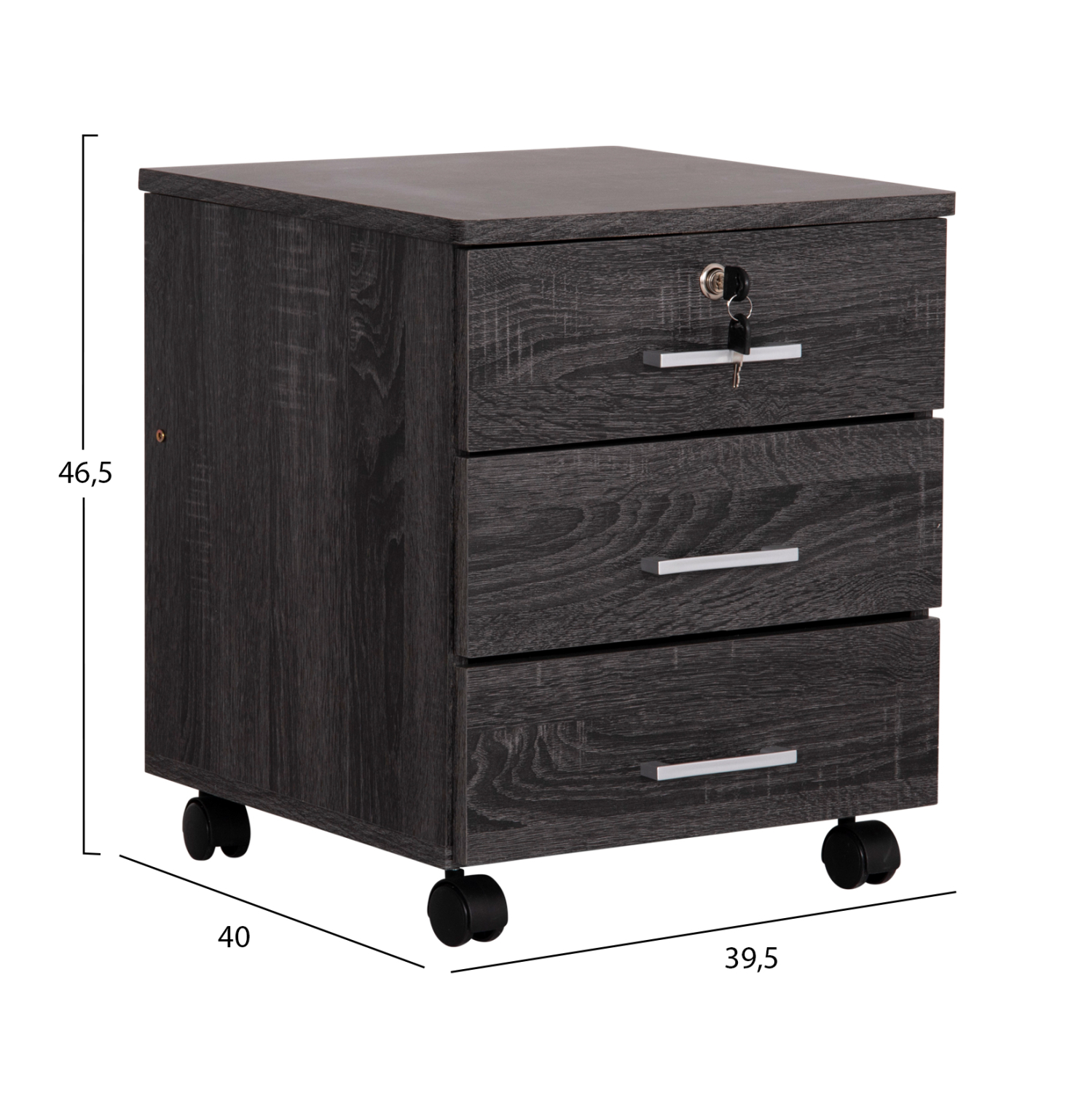 Συρταριέρα γραφείου με ροδάκια μελαμίνης σε ΑΝΘΡΑΚΙ απόχρωση, με 3 συρτάρια και κλειδαριά.