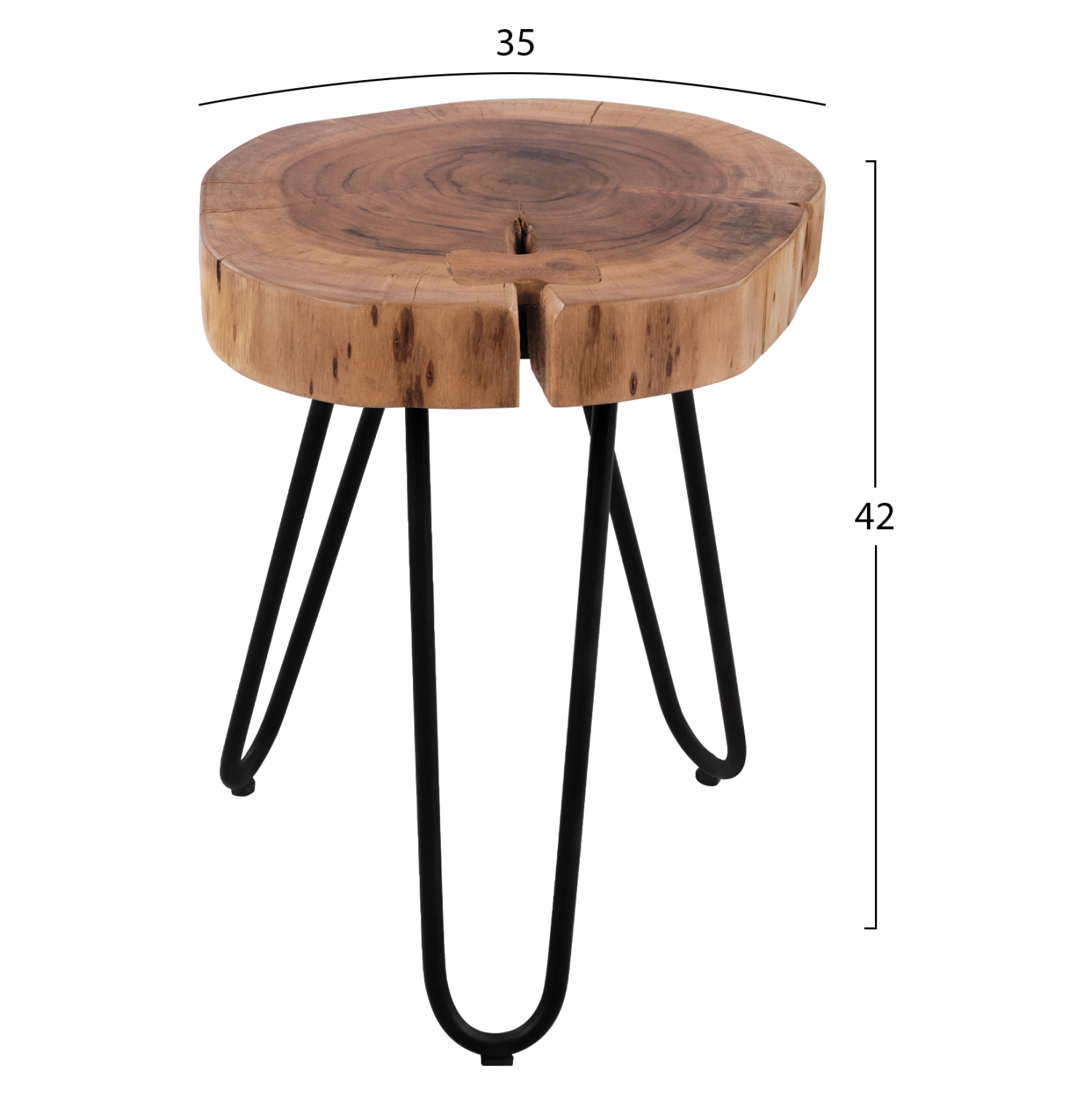 ΗΜ8209.11 Βοηθητικό τραπεζάκι—– Το τρίποδο βοηθητικό τραπεζάκι ΗΜ8209.11 είναι ο ορισμός του ρουστίκ στυλ στο έπιπλο. Το ξύλο είναι στο φυσικό του χρώμα αλλά και στην φυσική του κατάσταση, δηλαδή μια φέτα από τον κορμό του δέντρου. Τα 3 μαύρα μεταλλικά πόδια ολοκληρώνουν αυτή την πολύ απλή και πρακτική υλοποίηση.