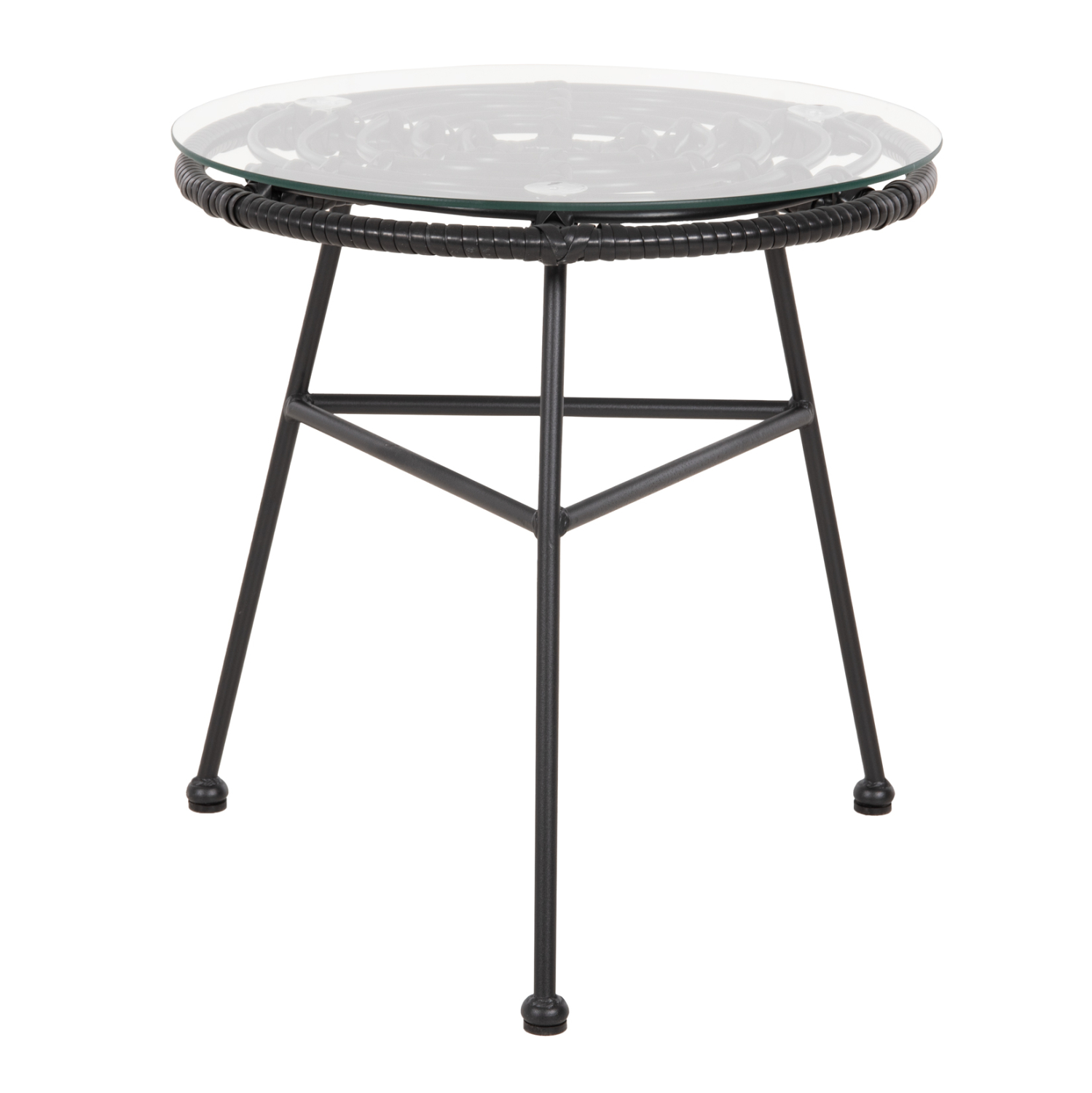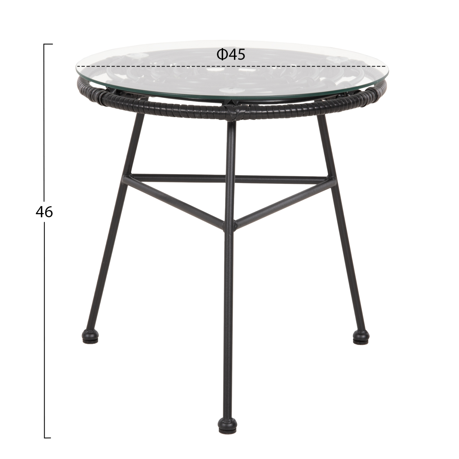 ΤΡΑΠΕΖΑΚΙ ΣΤΡΟΓΓΥΛΟ ΜΑΥΡΟ ΜΕΤΑΛΛΙΚΟ ALLEGRA HM5459.12 ΜΑΥΡΟ WICKER-ΓΥΑΛΙ Φ45×46Υεκ