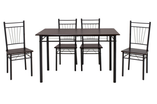 Tραπεζαρία Roza σετ 5τμχ χρώμα σκούρο καρυδί – πόδια μαύρο ματ 120x70x75εκ
