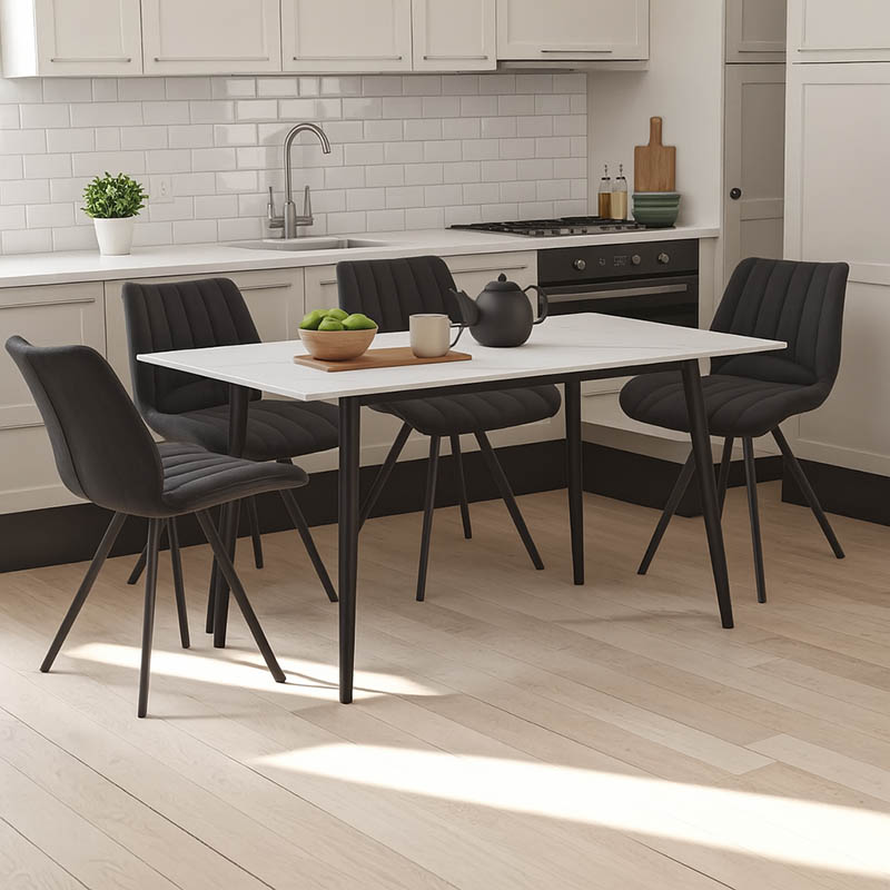 Τραπεζαρία Sabia-Gustas pakoworld σετ 5τεμ μαύρο μαρμάρου-μαύρο-ανθρακί 140x80x75εκ