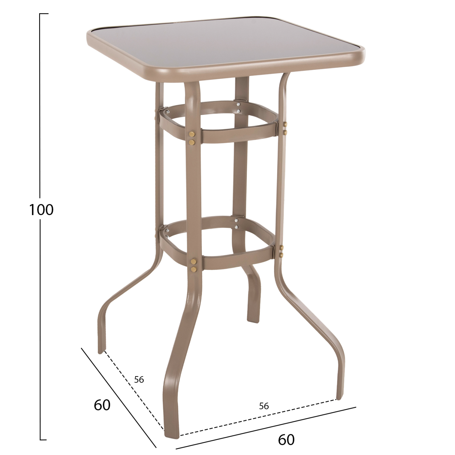 ΤΡΑΠΕΖΙ ΜΠΑΡ ΤΕΤΡΑΓΩΝΟ FIGGY HM6066.04 ΜΕΤΑΛΛΙΚΟ ΣΑΜΠΑΝΙ-ΓΥΑΛΙ ΑΣΦΑΛΕΙΑΣ 60x60x100Υεκ