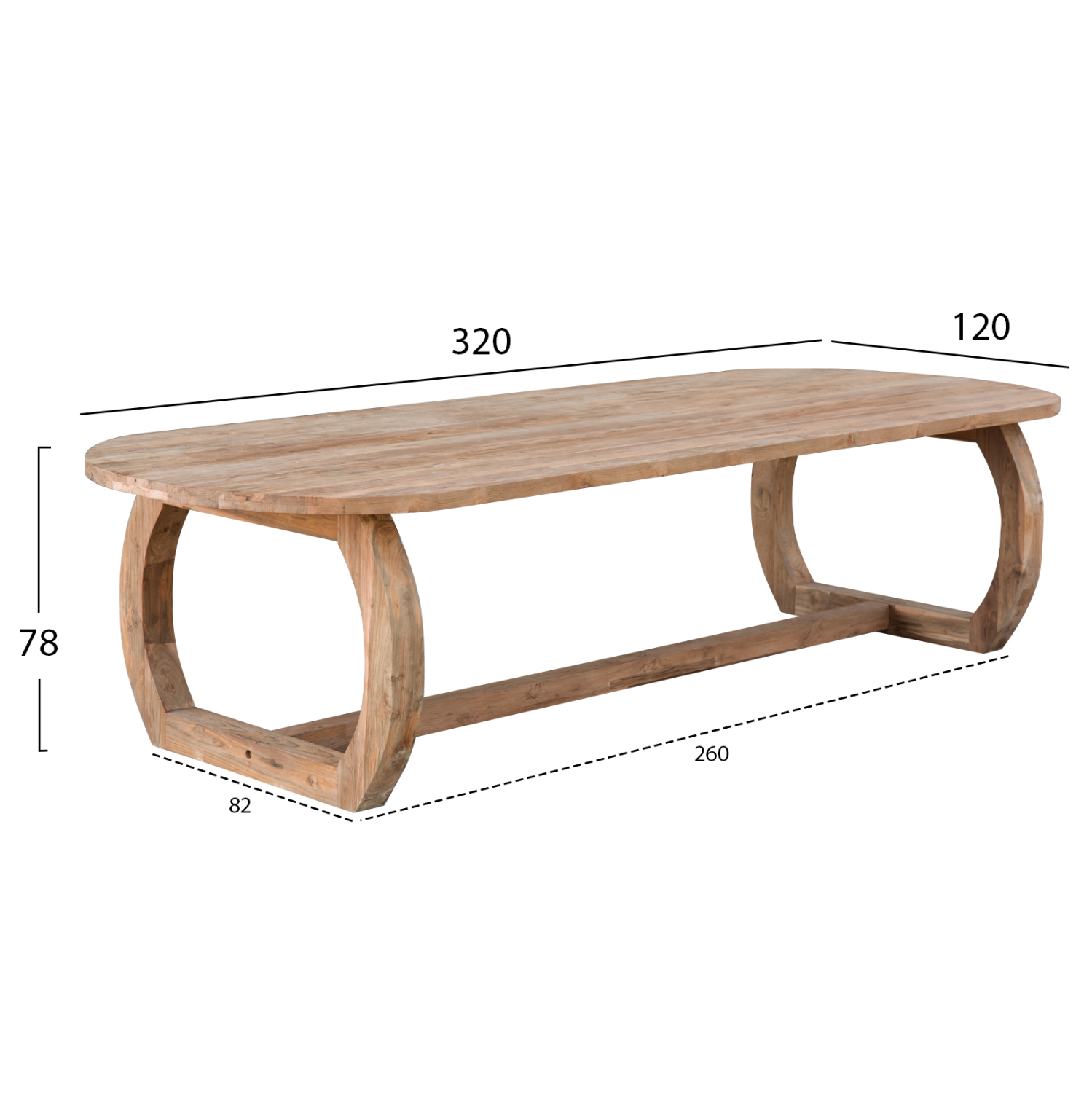 HM9561—Μεγάλο τραπέζι ορθογώνιο, κατασκευασμένο εξολοκλήρου από μασίφ ξύλα ΤΕΑΚ στο φυσικό τους χρώμα. Οι γωνίες είναι στρογγυλεμένες δίνοντας μια άλλη αίσθηση στον χώρο. Ένα τραπέζι που θα ενθουσιάσει τους πάντες με το μέγεθός του και την αντοχή του. Εσείς το μόνο που έχετε να κάνετε είναι να βρείτε τις καρέκλες που θα ταιριάξουν με αυτό το υπέροχο τραπέζι!