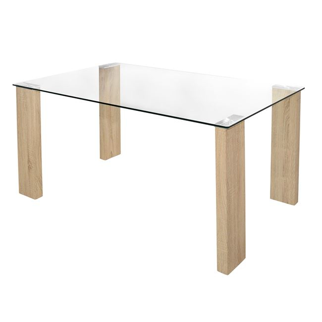 ΤΡΑΠΕΖΙ MORGAN 140Χ80Χ75ΕΚ HM0083.01 ΓΥΑΛΙΝΟ ΜΕ ΞΥΛΙΝΑ ΠΟΔΙΑ