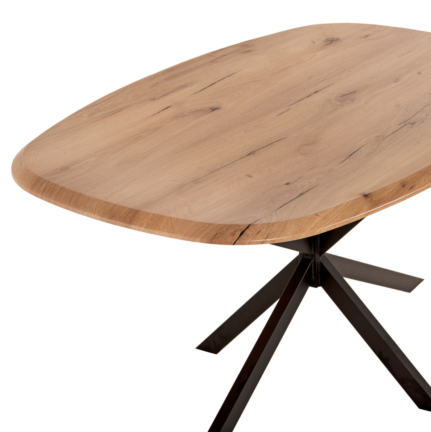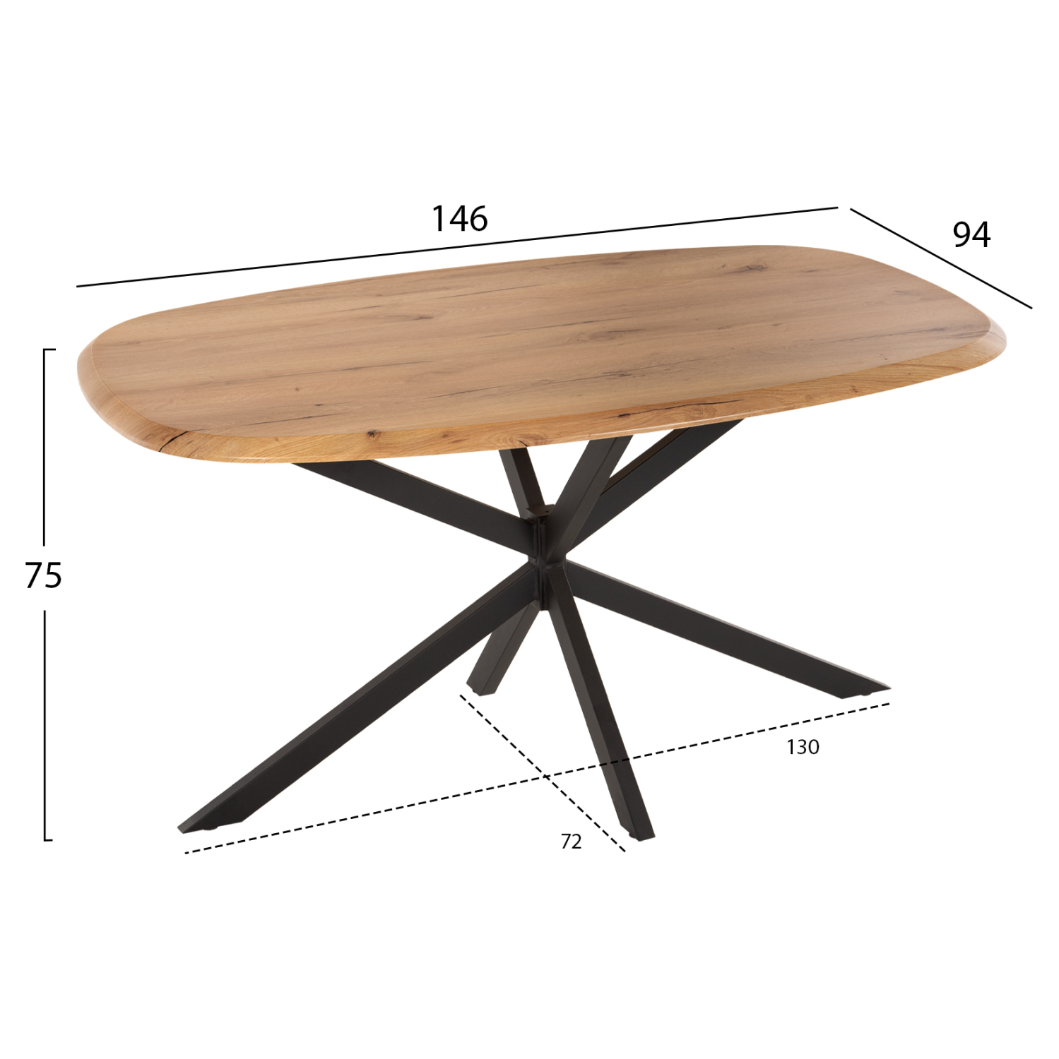 Το RODDEN είναι ένα οβάλ τραπέζι τραπεζαρίας με χαρακτηριστικά που το κατατάσσουν στα καλύτερα της κατηγορίας του. Διαθέτει φαλτσοκομμένη οβάλ επιφάνεια (επαγγελματικού επιπέδου) σε χρωματισμό ΦΥΣΙΚΟΥ ΞΥΛΟΥ , η οποία είναι κατάλληλη για επαφή με τρόφιμα και γενικά το υλικό είναι φιλικό προς το περιβάλλον. Μπορεί να χρησιμοποιηθεί είτε σε εσωτερικούς, είτε σε εξωτερικούς χώρους. Αυτή η επιφάνεια στηρίζεται σε μια μεταλλική βάση/πόδια σε ΜΑΥΡΟ χρώμα σε διάταξη διπλού χιαστί και με ρεγουλατόρους στο κάτω μέρος.
