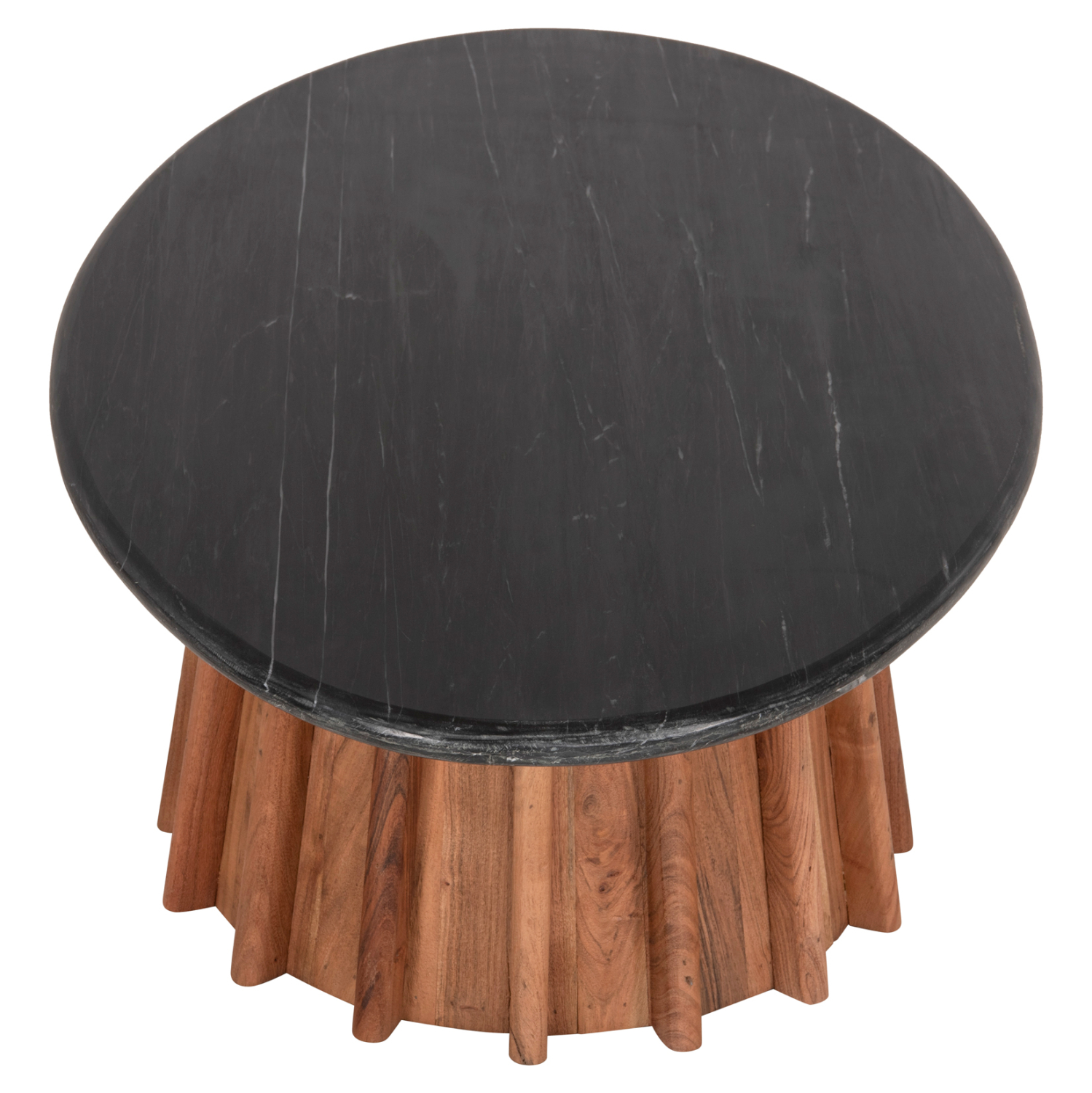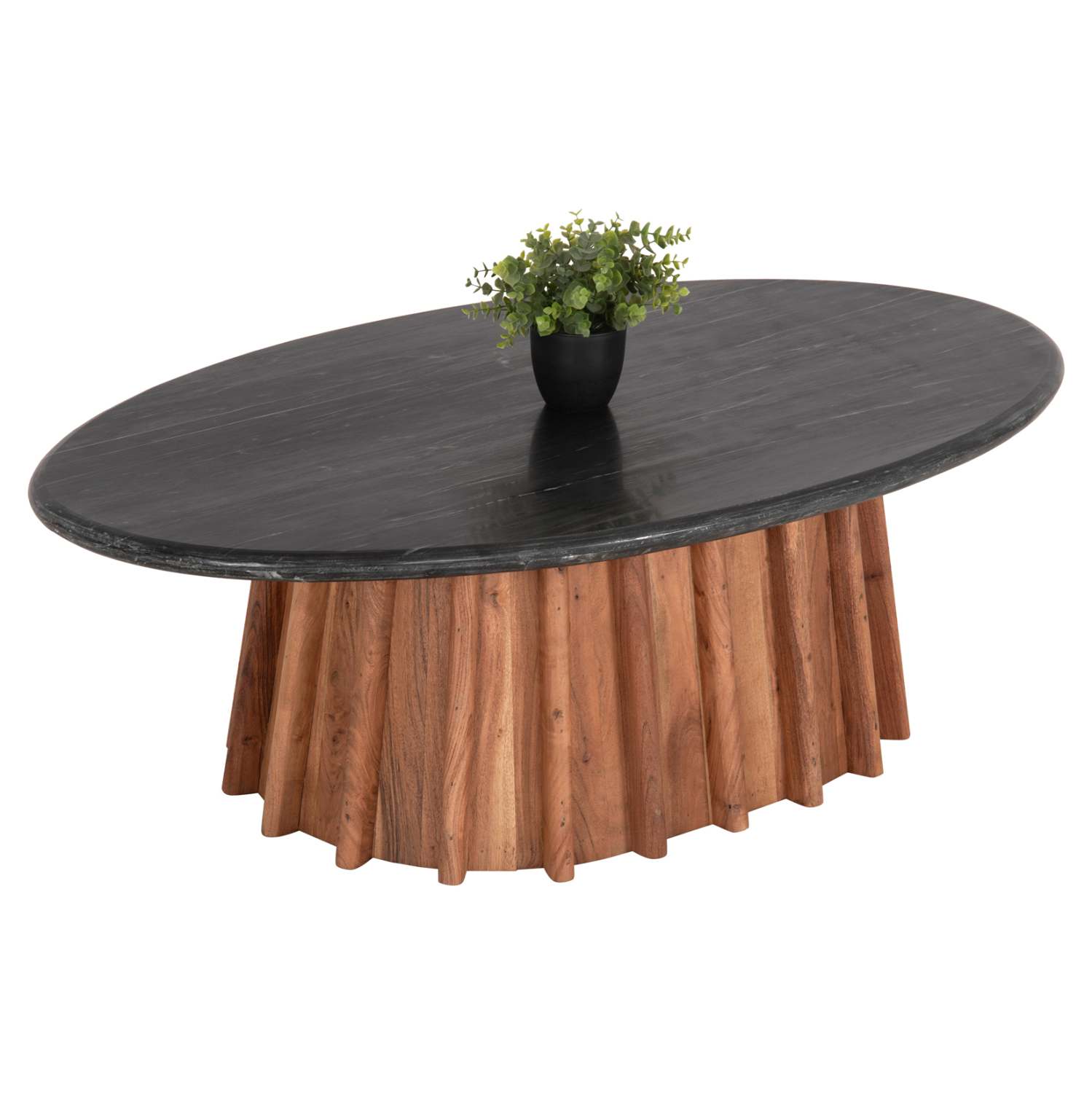 Το DRAXX είναι ένα πανέμορφο οβάλ τραπέζι σαλονιού σε ικανοποιητική διάσταση με επιφάνεια από ΜΑΥΡΟ ΜΑΡΜΑΡΟ. Αυτή η βαριά επιφάνεια στηρίζεται σε μια κεντρική κολώνα με κωνικό οβάλ σχήμα από ποιοτικό μασίφ ξύλο ακακίας σε ΦΥΣΙΚΟ χρώμα, αριστοτεχνικά λαξευμένο.