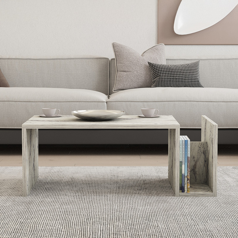 Αρχική σελίδα Έπιπλα εσωτερικού χώρου Τραπέζια Τραπέζι σαλονιού Poko pakoworld σε λευκή-γκρι όψη μαρμάρου 86.8x50x32,4εκ