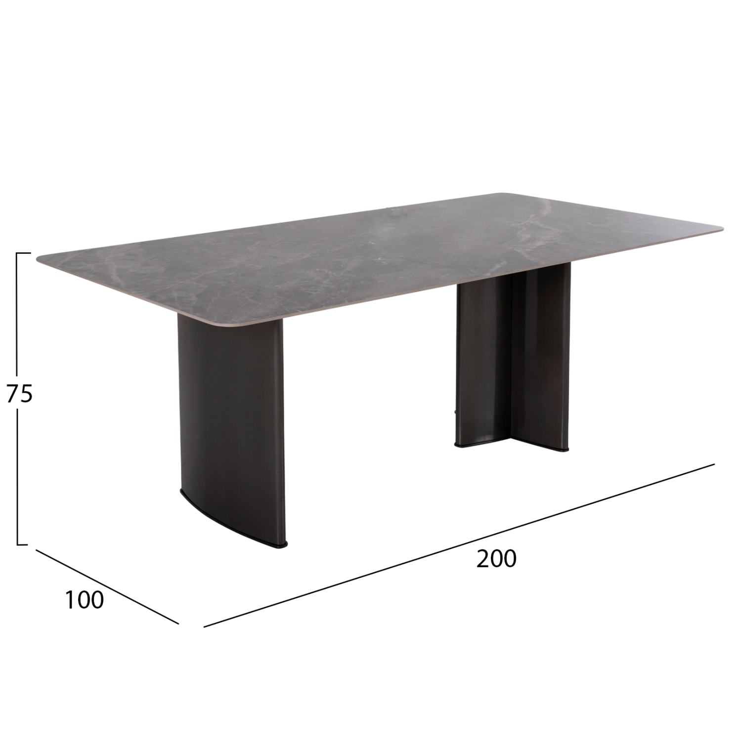 ΤΡΑΠΕΖΙ ΤΡΑΠΕΖΑΡΙΑΣ HEFF HM9766.01 12mm ΚΕΡΑΜΙΚΗ ΕΠΙΦΑΝΕΙΑ-MDF & ΜΕΤΑΛΛΟ 200x100x76Υεκ