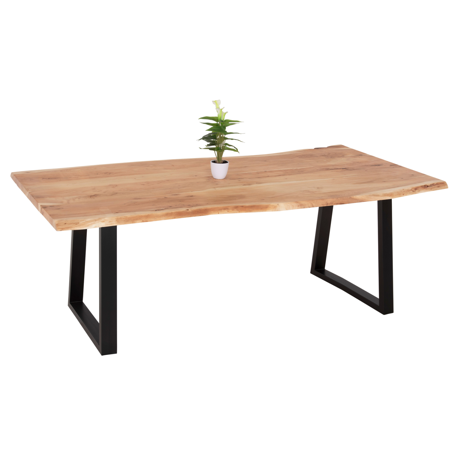 Το μοναδικό χειροποίητο τραπέζι ΜΟΝΤΑΝΑ διαθέτει επιφάνεια από φυσικό μασίφ ξύλο ΑΚΑΚΙΑΣ σε ΑΝΟΙΧΤΟ ΦΥΣΙΚΟ χρώμα. To σχήμα είναι ΑΚΑΝΟΝΙΣΤΟ ορθογώνιο και στηρίζεται σε δύο μαύρες μεταλλικές βάσεις με τραπεζοειδές σχήμα. Το μοντέρνο design συναντά την φύση και δίνει μια διαχρονική και ζεστή αίσθηση στον χώρο σας. Συνδυάστε τo με ένα ξύλινο παγκάκι ή μια καρέκλα με την ίδια αισθητική και αποκτήστε την τραπεζαρία που πάντα επιθυμούσατε.