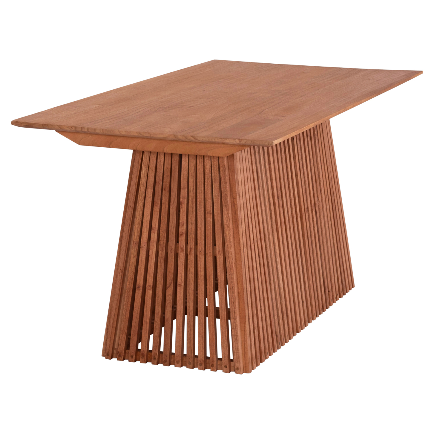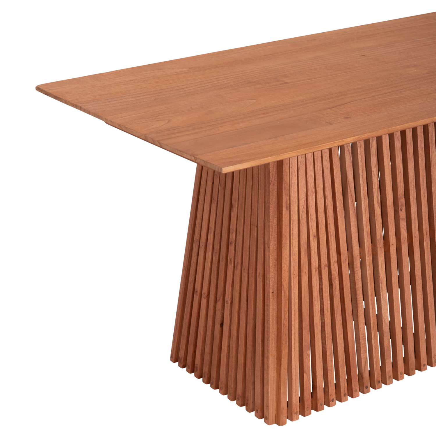 Το FRANTZ είναι ένα ορθογώνιο τραπέζι για την τραπεζαρία, με ικανοποιητικές διαστάσεις σε φυσικό χρώμα ξύλου. Το τραπέζι στηρίζεται σε μια, επίσης, ορθογώνια ξύλινη κατασκευή στο κέντρο με πολλές δοκούς σε πυραμιδωτή διάταξη που ενώνονται μεταξύ τους στην εσωτερική πλευρά. Αυτό το τραπέζι θα αναβαθμίσει αισθητικά την τραπεζαρία σας ενώ μπορεί να ταιριάξει με πολλά διαφορετικά στυλ και χρώματα στον τριγύρω χώρο, όπως και με διαφορετικά στυλ καρέκλας.