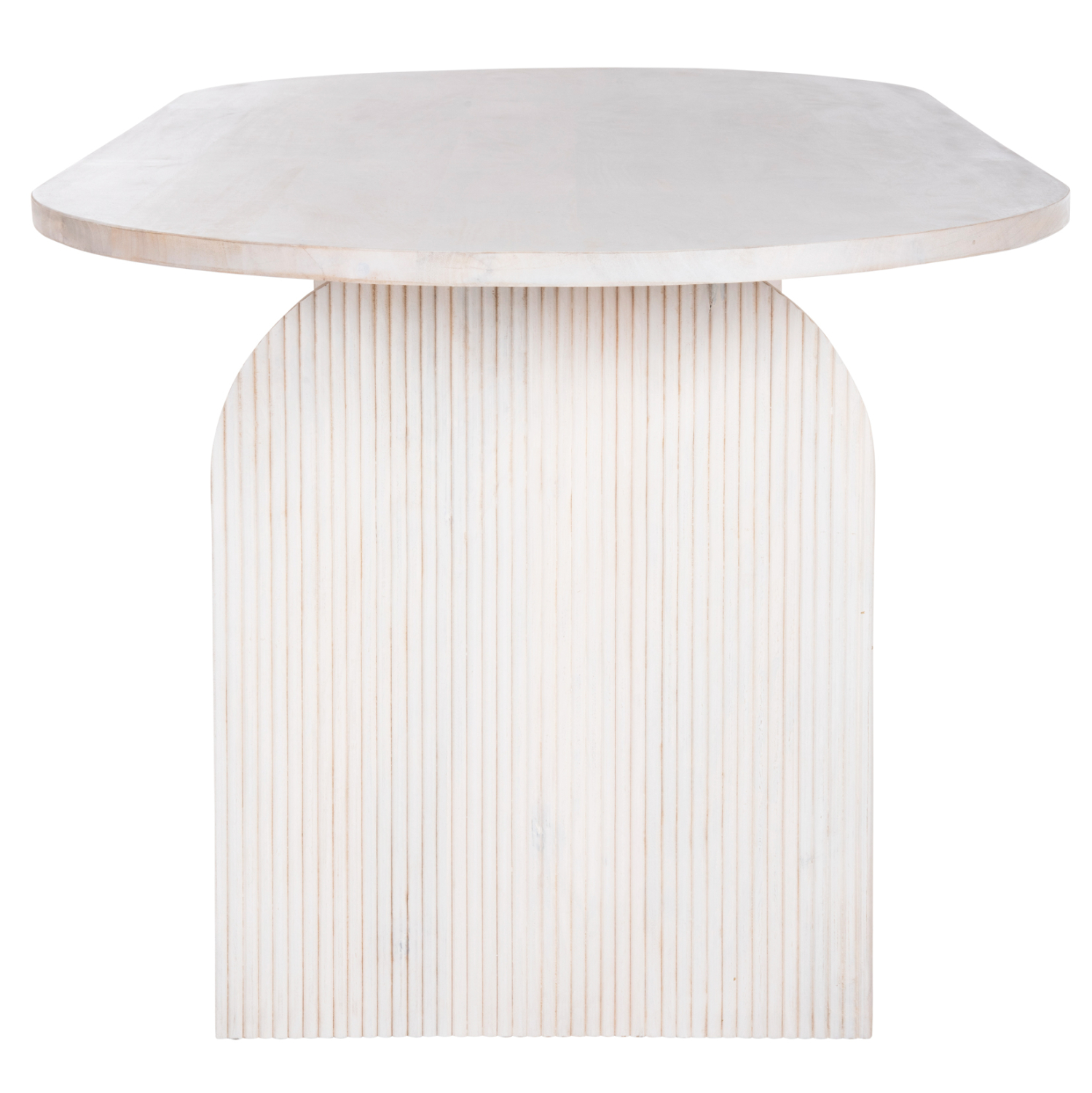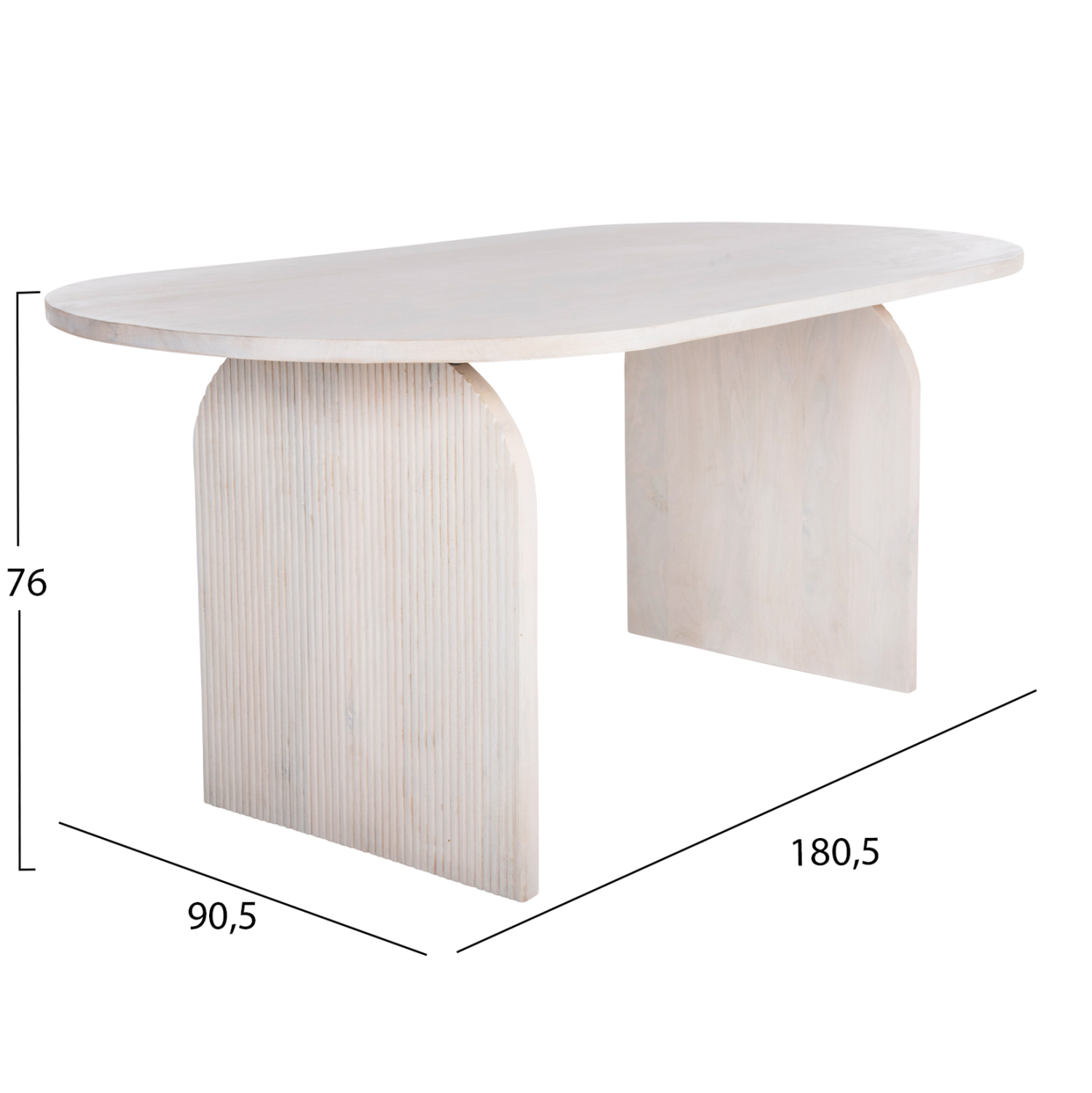 Ανακαλύψτε το τραπέζι τραπεζαρίας HONKY που είναι εξολοκλήρου κατασκευασμένο από μασίφ ξύλο mango σε ΛΕΥΚΟ χρώμα. To σχήμα είναι τυπικό οβάλ και στηρίζεται σε 2 μασίφ αψίδες από το ίδιο ξύλο και του ίδιου χρώματος.