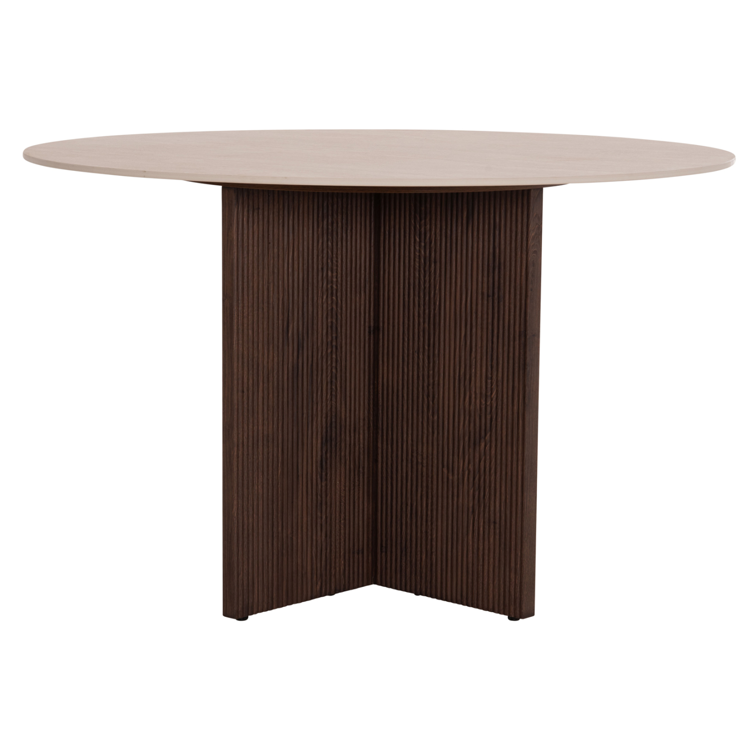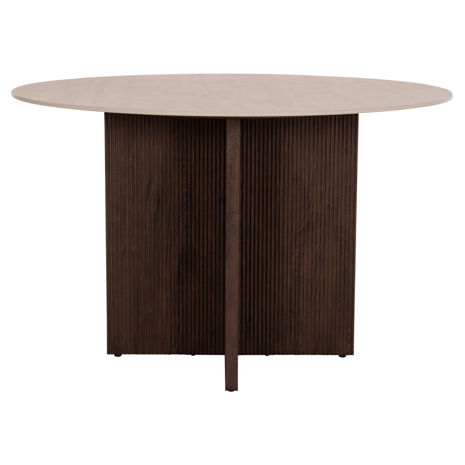 Το τραπέζι τραπεζαρίας SKY είναι στρογγυλό και αποτελεί νέα προσθήκη στην γκάμα μας. Η επίπεδη επιφάνειά του είναι κεραμική σε χρωματισμό TRAVERTINE STONE, ενώ η βάση του είναι σταυρωτή κατασκευασμένη εξολοκλήρου από MDF σε καφέ χρώμα, με όμορφες πτυχώσεις.