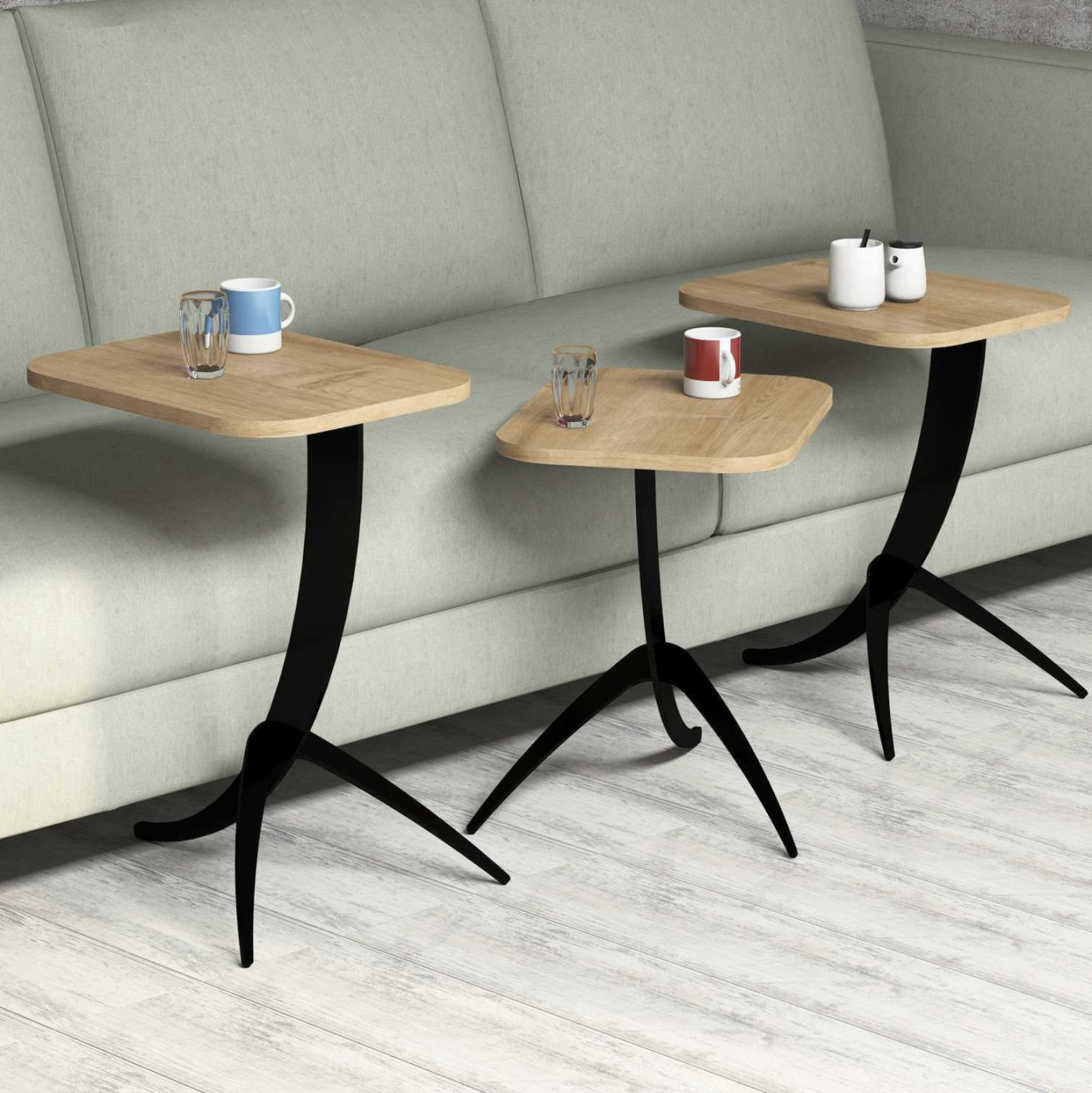 ΗΜ9508.01 τραπεζάκια σαλονιού—– Τα τραπεζάκια ζιγκόν θα σας ενθουσιάσουν με το στυλ και την πρακτικότητά τους. Μπορείτε να δημιουργήσετε πρωτότυπες διακοσμητικές συνθέσεις, δίνοντας νέα πνοή στον χώρο σας με αυτό το σετ. Πρόκειται για 3 τραπεζάκια με επιφάνεια μελαμίνης σε χρώμα φυσικού ΟΑΚ που αποθηκεύονται το ένα κάτω από το άλλο. Τα εντυπωσιακά πόδια, είναι μεταλλικά σε μαύρο χρώμα και αποτελούν το χαρακτηριστικό γνώρισμα αυτού του σετ.