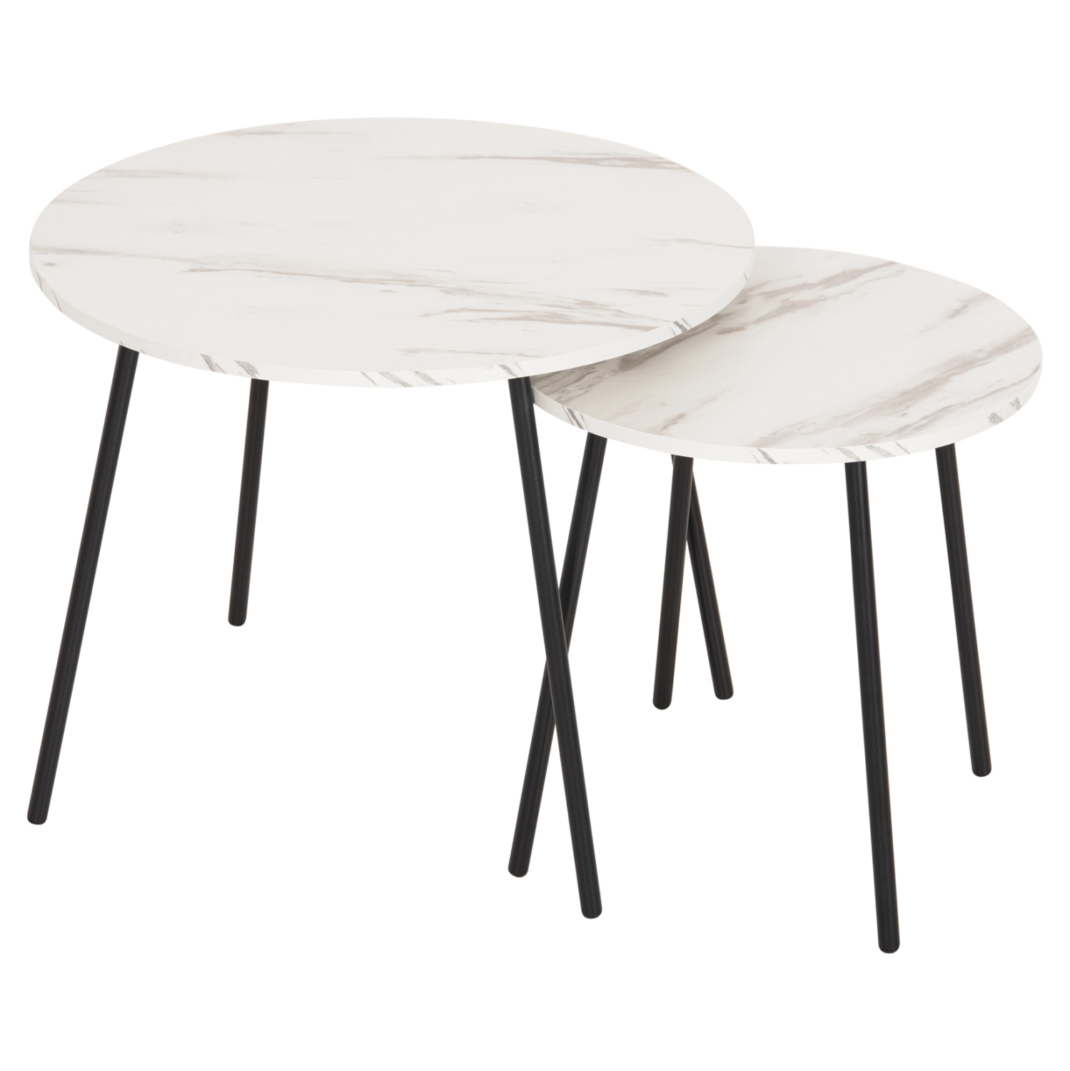 Τα τραπεζάκια ζιγκόν CUPPER θα σας ενθουσιάσουν με το στυλ και την πρακτικότητά τους. Μπορείτε να δημιουργήσετε πρωτότυπες διακοσμητικές συνθέσεις, δίνοντας νέα πνοή στον χώρο σας με αυτό το σετ. Πρόκειται για 2 στρογγυλά τραπέζια, ένα ψηλότερο κι ένα πιο κοντό που αποθηκεύεται κάτω από το ψηλό. Τα πόδια είναι μεταλλικά σε μαύρο χρώμα, ενώ οι επιφάνειές τους είναι σε χρώμα ΛΕΥΚΟ ΜΑΡΜΑΡΟ.