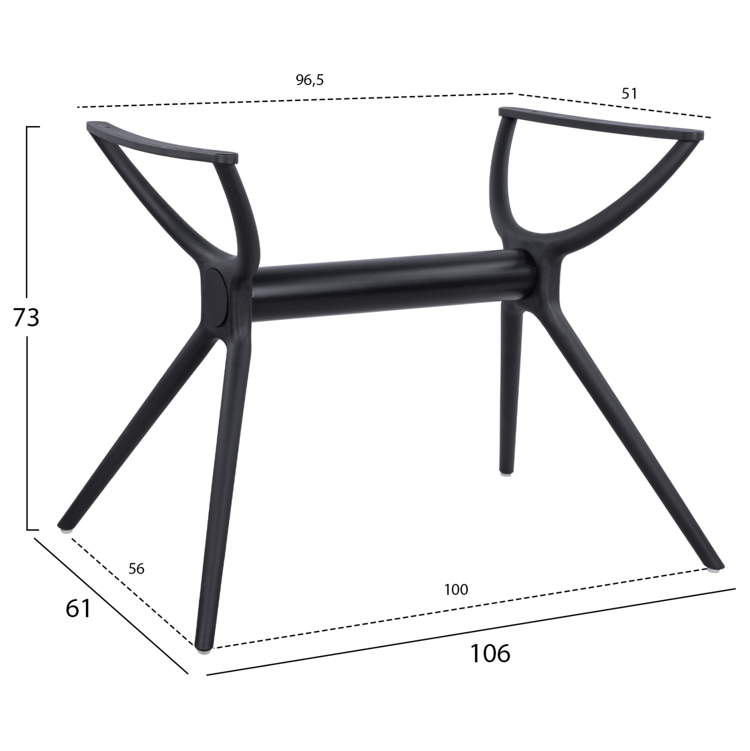 Βάση δίστηλη πολυπροπυλενίου και μετάλλου σε μαύρη ματ απόχρωση με ρεγουλατόρους. Ιδανική για επιφάνεια 120×80 εκ.