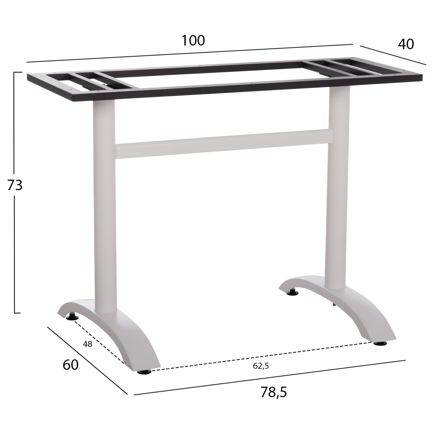 ΒΑΣΗ ΤΡΑΠΕΖΙΟΥ ΑΛΟΥΜΙΝΙΟΥ ΔΙΠΛΗ HM461.12 ΛΕΥΚΗ ΜΕ ΡΕΓΟΥΛΑΤΟΡΟΥΣ 100x60x73Υεκ.