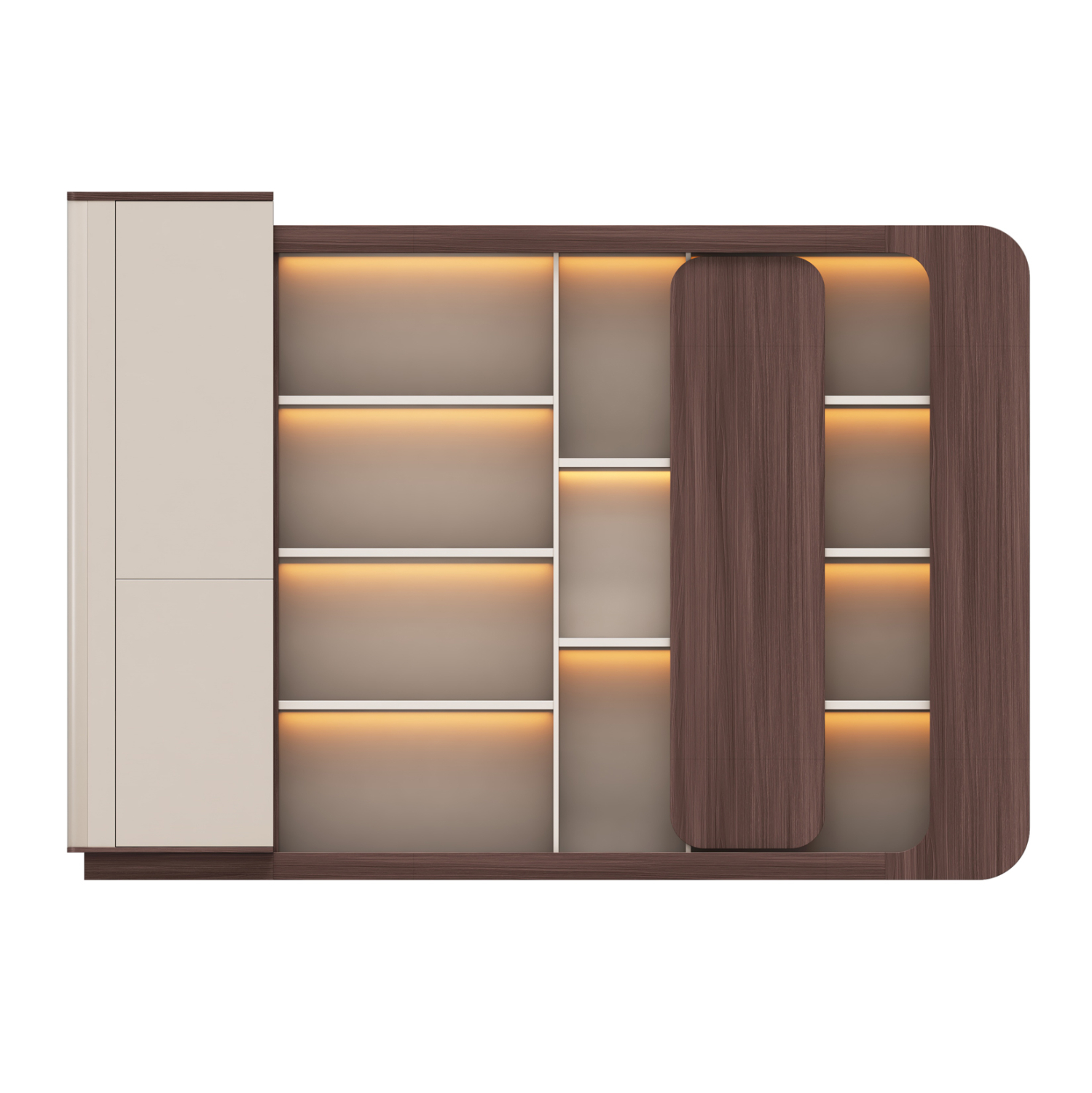 Βιβλιοθήκη Γραφείου PRESIDENT με LED Φωτισμό και Διχρωμία Καρυδί – Μπεζ