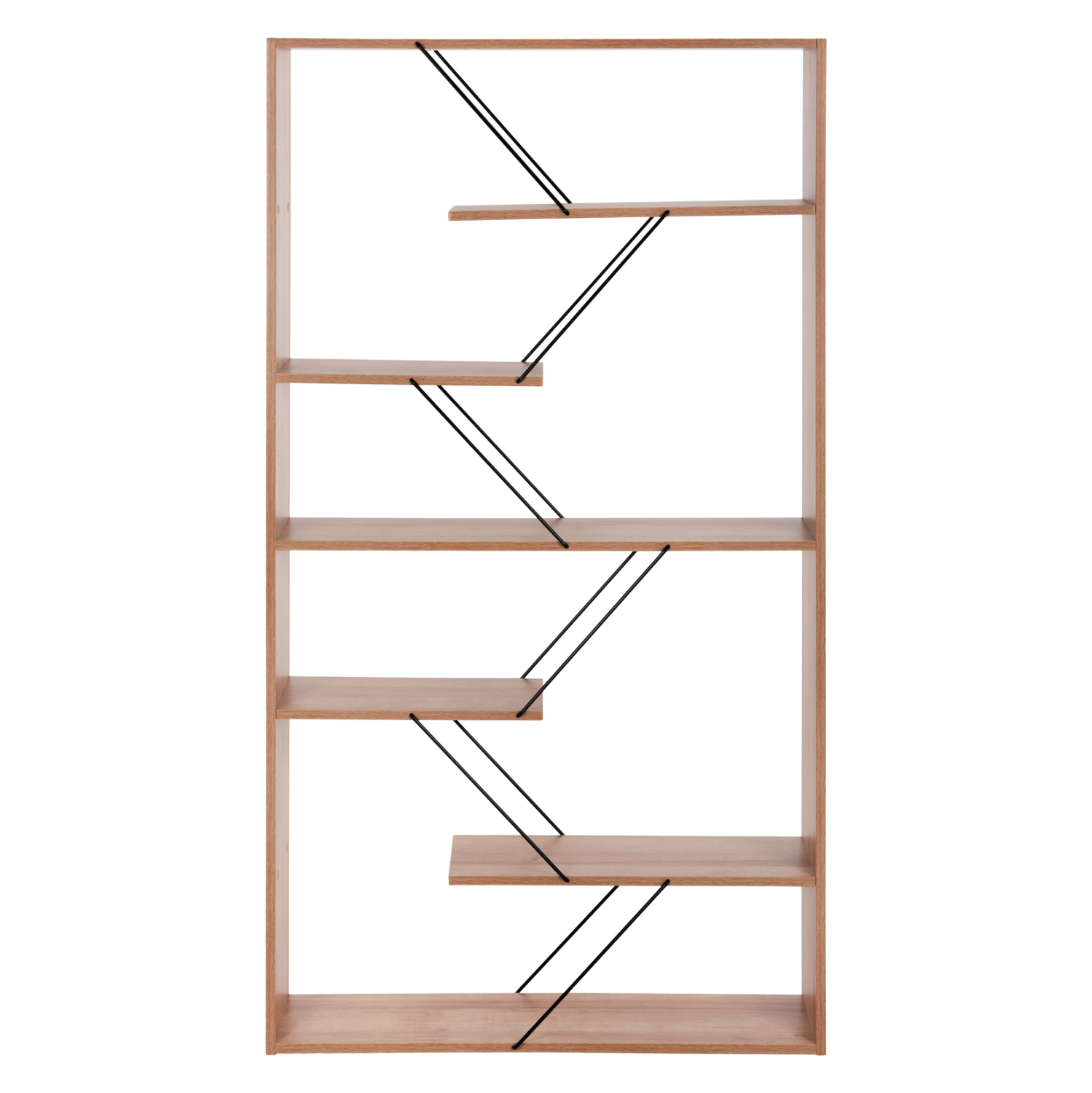 Η βιβλιοθήκη TARS είναι μια μοντέρνα πρόταση για το γραφείο σας ή οπουδήποτε αλλού θέλετε να τοποθετήσετε μια βιβλιοθήκη. Διαθέτει 5 ράφια τοποθέτησης που δεν πιάνουν όλο το μήκος της βιβλιοθήκης αλλά στηρίζονται μεταξύ τους με μεταλλικές ράβδους σύν ένα ράφι που είναι η κάτω επιφάνεια της βιβλιοθήκης, ενώ οι διαστάσεις της την καθιστούν βολική για πολλούς χώρους. Το χρώμα της είναι ΦΥΣΙΚΟ ΟΑΚ με ΜΑΥΡΕΣ ράβδους.