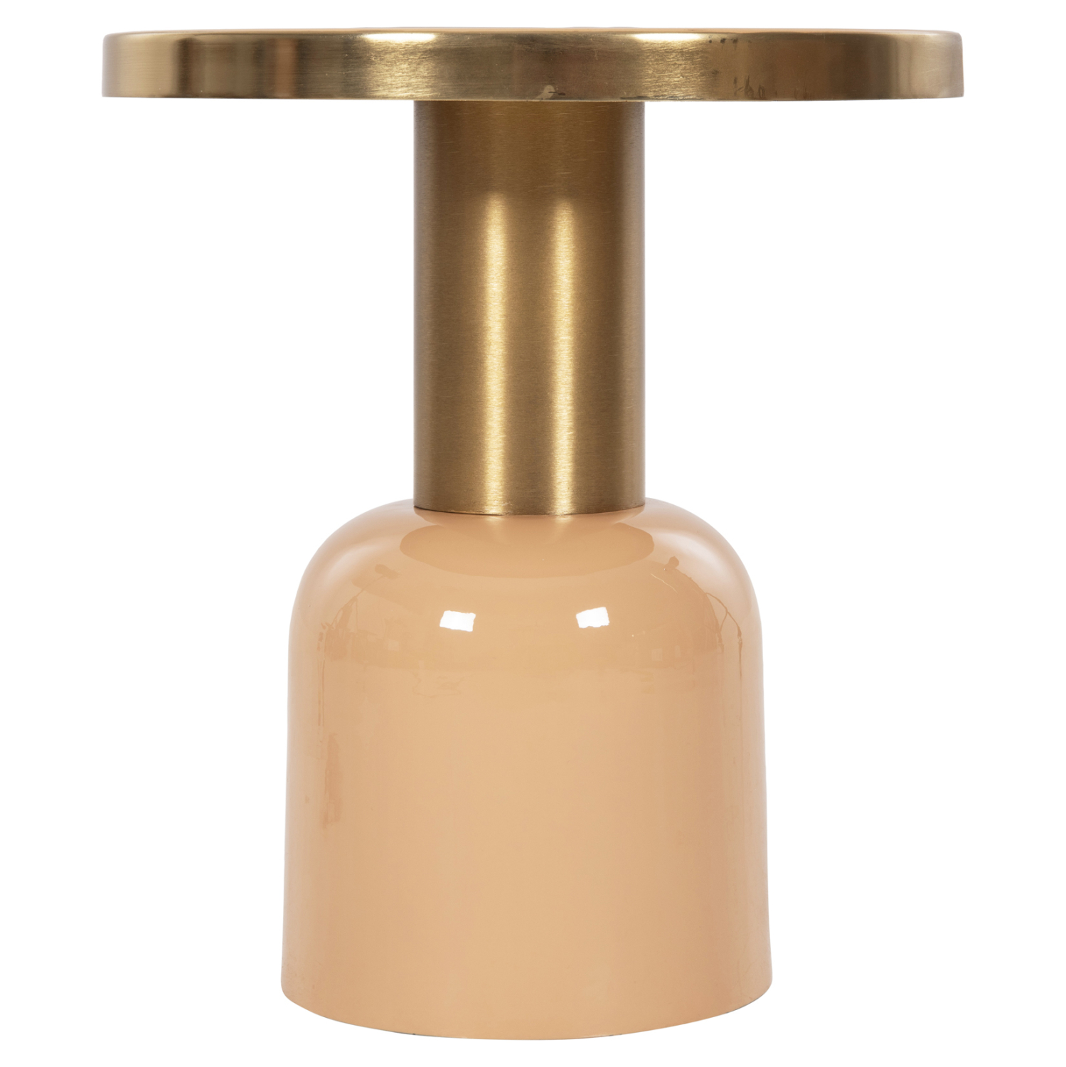 Το βοηθητικό τραπεζάκι ERODE για το σαλόνι είναι μια από τις νέες προσθήκες στην γκάμα μας. Πρόκειται για ένα μεταλλικό τραπεζάκι στρογγυλό με χαμηλή κυλινδρική βάση και ψηλό λαιμό που την συνδέει με την στρογγυλή επιφάνεια. Ο λαιμός και η περίμετρος της επιφάνειας είναι σε ΧΡΥΣΟ χρώμα ενώ η βάση και η επιφάνεια είναι σε χρώμα ΣΟΜΟΝ με ΜΠΕΖ λεπτομέρεια, που δίνουν ένα πολύ ιδιαίτερο αισθητικό αποτέλεσμα. Ιδανικό τόσο για το σπίτι, όσο και για επαγγελματικούς χώρους.