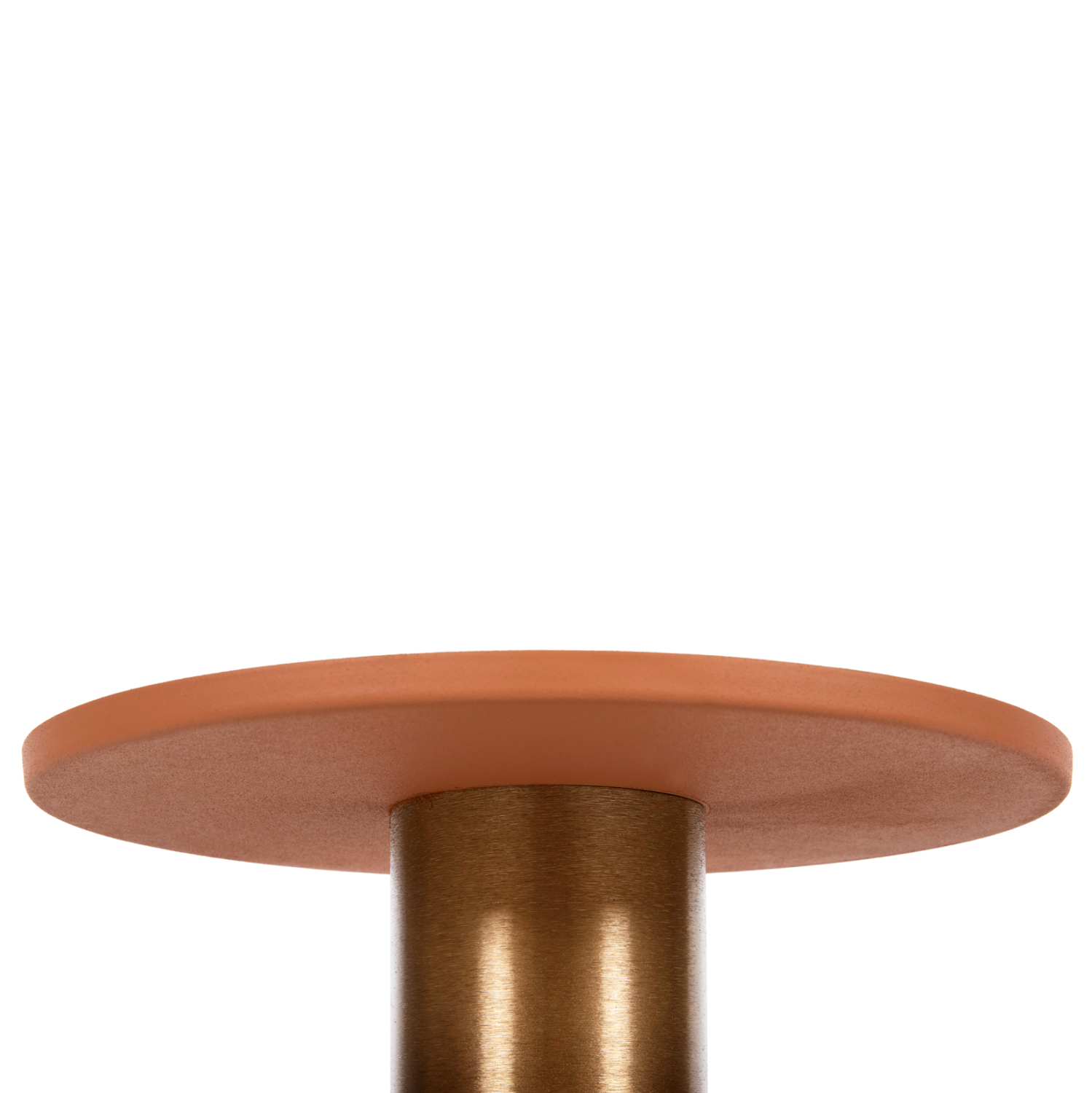 Το βοηθητικό τραπεζάκι PUNJAB για το σαλόνι είναι μια από τις νέες προσθήκες στην γκάμα μας. Πρόκειται για ένα τραπεζάκι στρογγυλό με κυλινδρική βάση και μεταλλικό. Το χρώμα του είναι ΠΟΡΤΟΚΑΛΙ όπως και η επιφάνεια, ενώ ο «λαιμός» είναι σε χρυσoχάλκινο χρώμα. Η ιδιαιτερότητα αυτού του τραπεζιού είναι οι γυαλιστερές και ματ επιφάνειες που προσδίδουν μια αίσθηση καθαρότητας και πολυτέλειας στο σαλόνι σας, όπως επίσης και ότι η περίμετρος της επιφάνειας είναι υπερυψωμένη και μοιάζει με πιάτο. Ιδανικό τόσο για το σπίτι, όσο και για επαγγελματικούς χώρους.