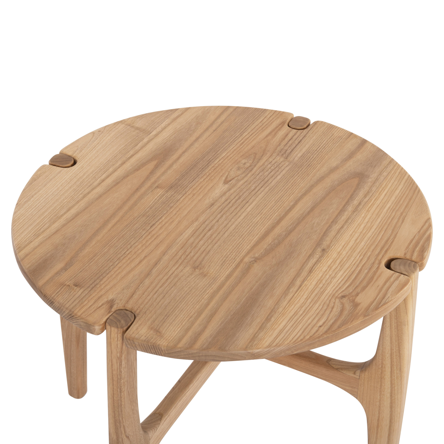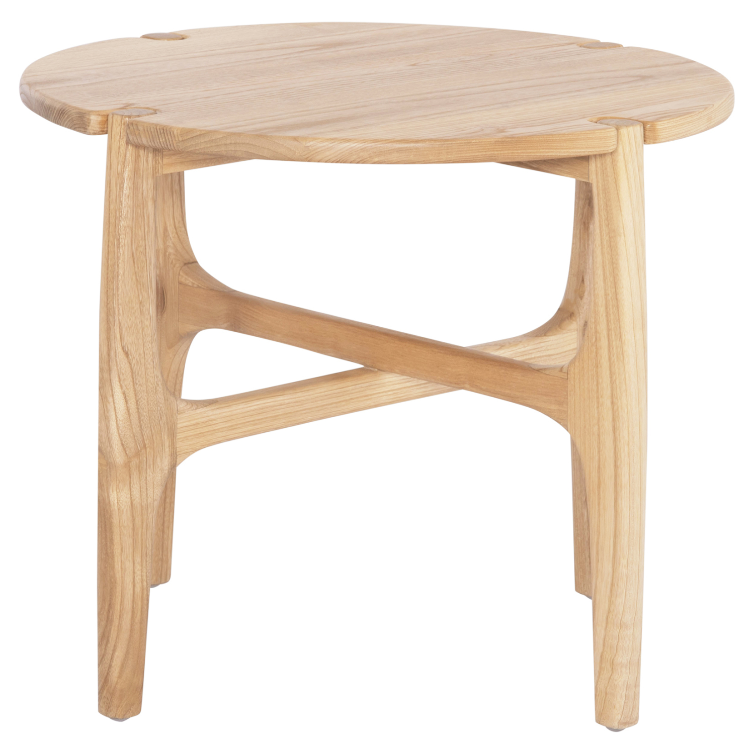 Το βοηθητικό τραπεζάκι KATAL είναι ένα στρογγυλό ξύλινο βοηθητικό τραπεζάκι σε φυσικό χρώμα ξύλου, με τέσσερα πόδια σε χιαστί διάταξη.