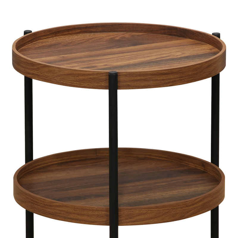 Βοηθητικό τραπέζι Portogie pakoworld mdf καρυδί-μέταλλο μαύρο Φ40×50εκ