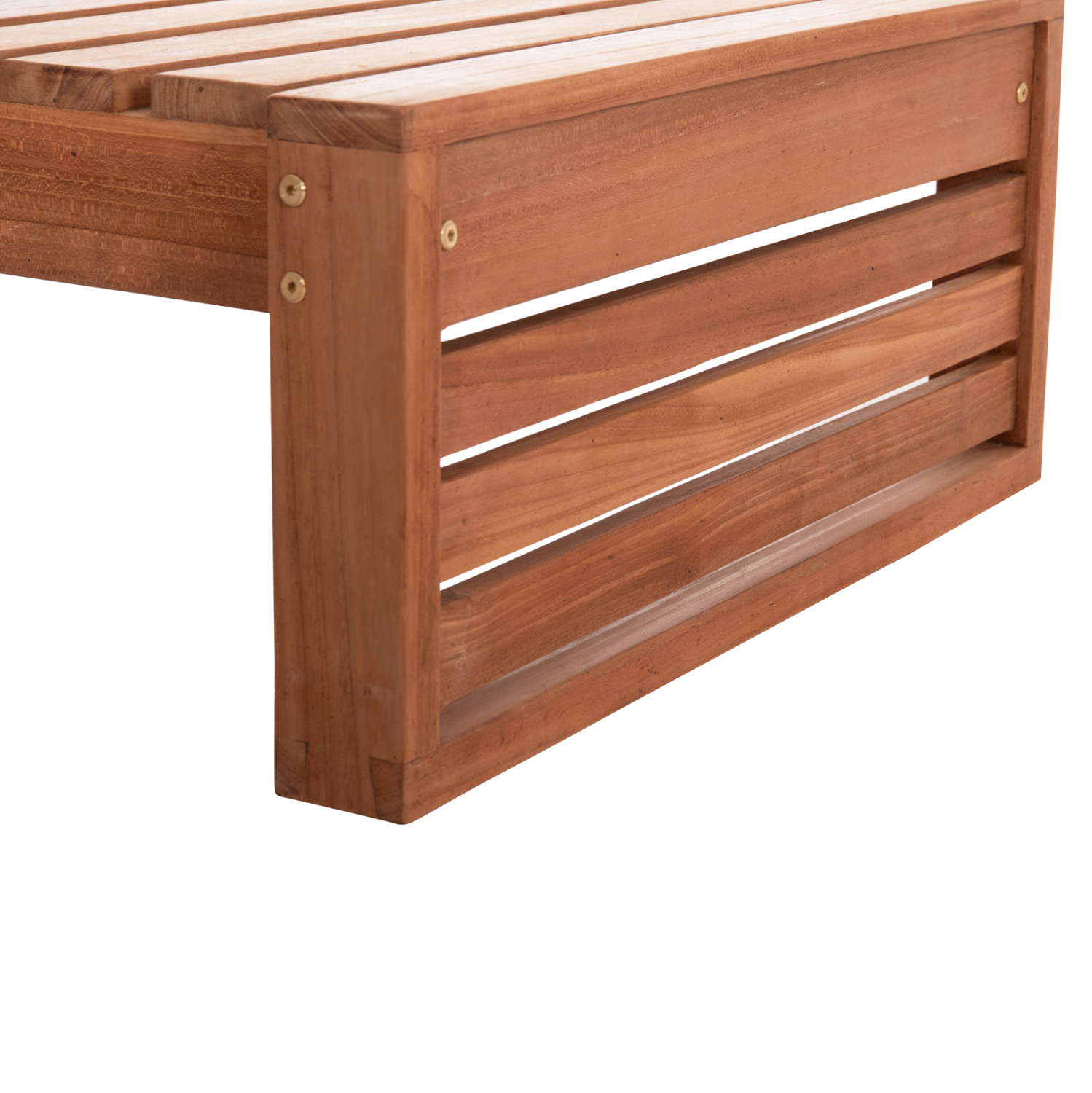 Η ξαπλώστρα είναι από εξαιρετικής ποιότητας ξύλο ΤΕΑΚ. Το ξύλο ΤΕΑΚ είναι ο πιο δημοφιλής τύπος σκληρού ξύλου. Είναι εξαιρετικά βαρύ, υψηλής αντοχής, ανθεκτικό στις καιρικές συνθήκες, ανθεκτικό στο σκέβρωμα και δεν αποσυντίθεται. Συχνά, τα νερά του ξύλου του είναι έντονα και σε ευθεία. Χρησιμοποιείται για πληθώρα κατασκευών εσωτερικού και εξωτερικού χώρου.