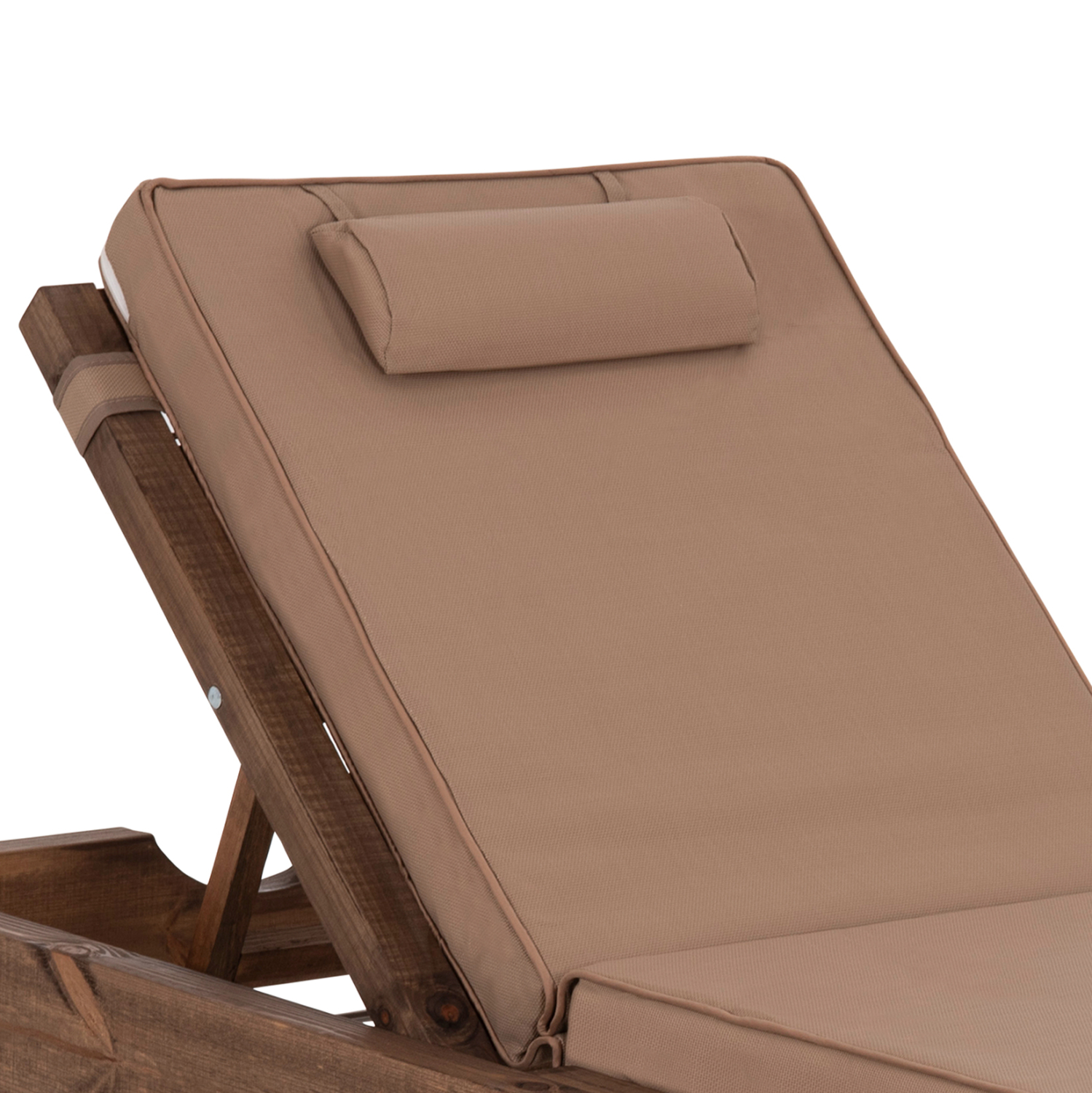 -Το μαξιλάρι που συνοδεύει την ξαπλώστρα είναι από αφρό μέτριας σκληρότητας ενώ το κάλυμμα είναι από textilene σε ΜΟΚΑ χρώμα. Δένεται στην ξαπλώστρα με κορδόνια και διαθέτει μαξιλαράκι κεφαλής.