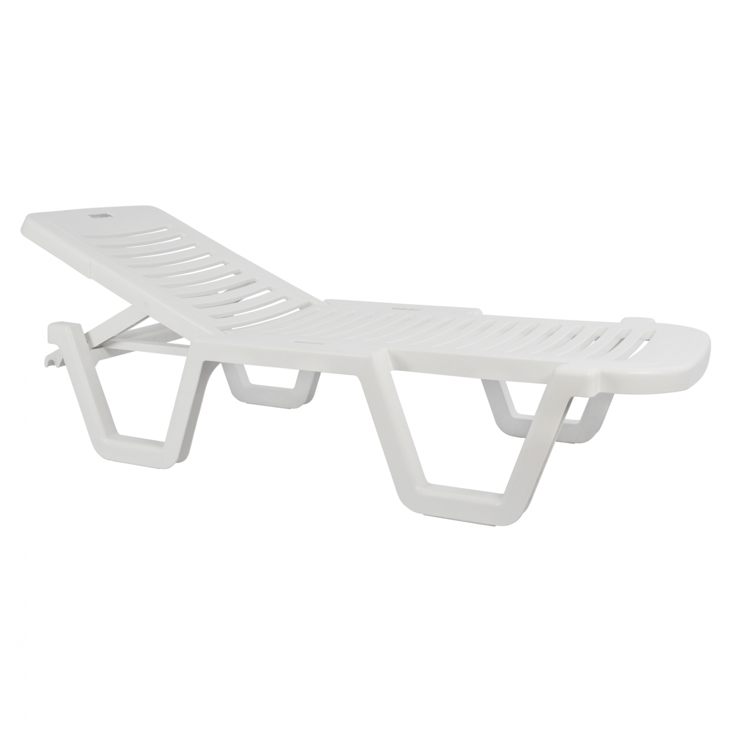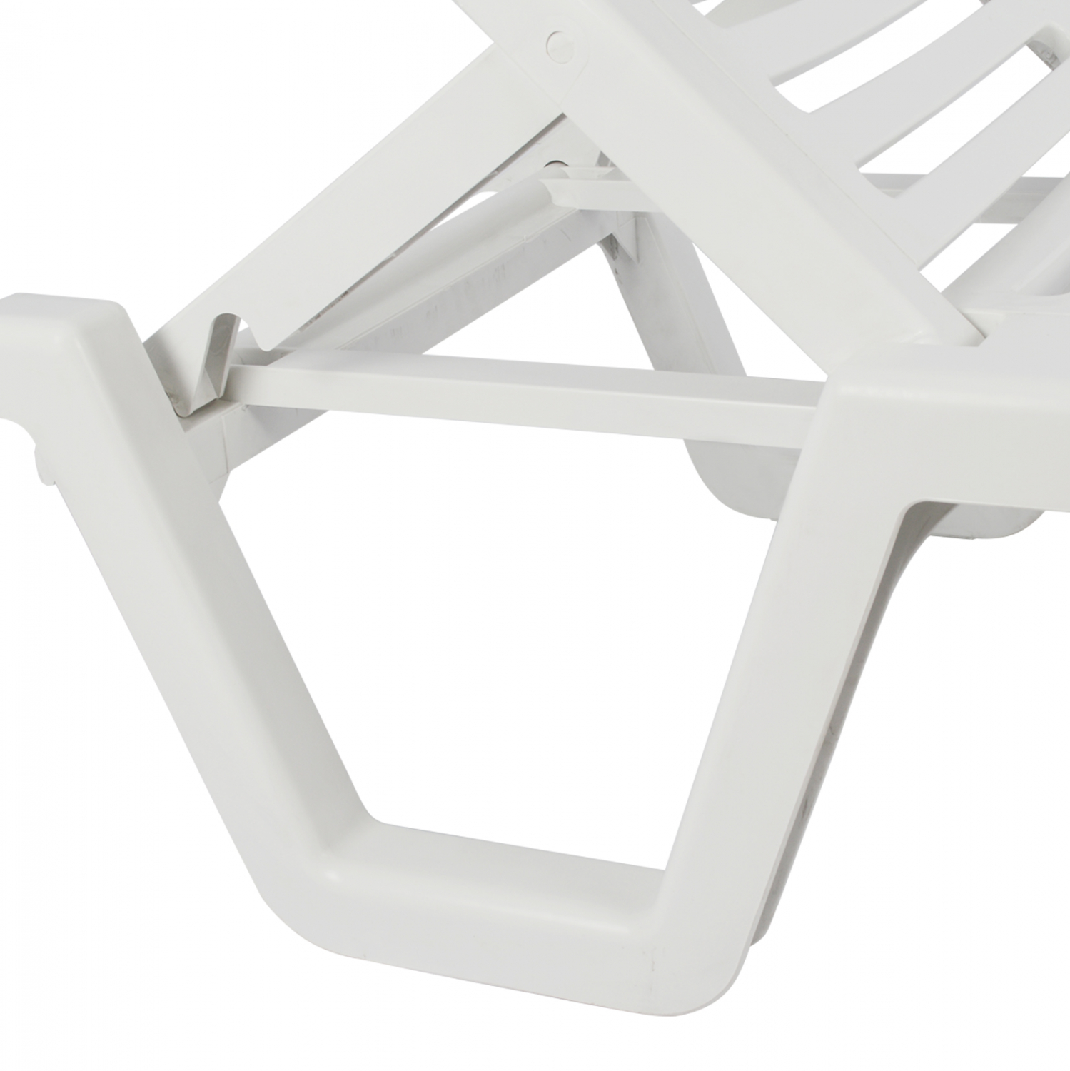 Επαγγελματική ανακλινόμενη ξαπλώστρα παραλίας, Relax, κατασκευασμένη από ανθεκτικό πλαστικό σε λευκό χρώμα.