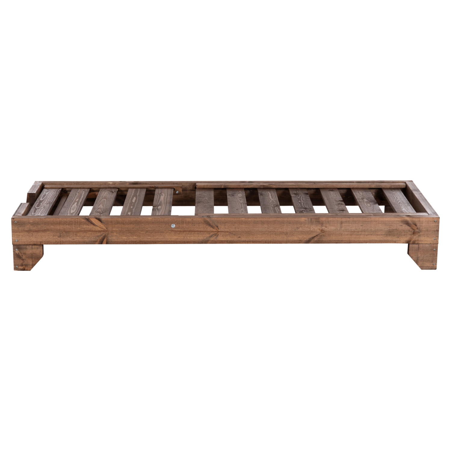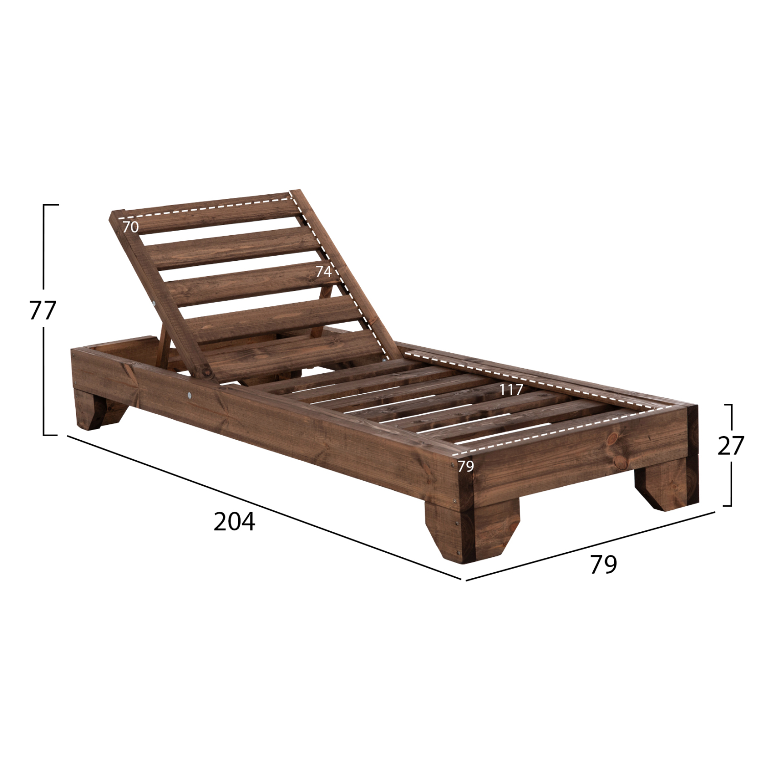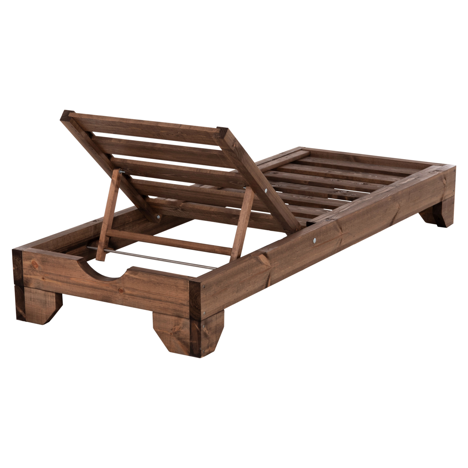 -Ολόκληρη η ξαπλώστρα έχει κατασκευαστεί από ξύλο πεύκου με εμποτισμό και επιπλέον στρώση με βερνίκι νερού. Το πεύκο είναι ένα μαλακό, λευκό ή ανοιχτό κίτρινο ξύλο το οποίο είναι ελαφρύ σε βάρος με ευθύγραμμα νερά ξύλου. Αντέχει στη συρρίκνωση, διόγκωση και κάμψη. Ο εμποτισμός υπό την ευρεία έννοια είναι ο χρωματισμός του ξύλου (συνήθως βερνίκια) με την μέθοδο της εμβάπτισης.